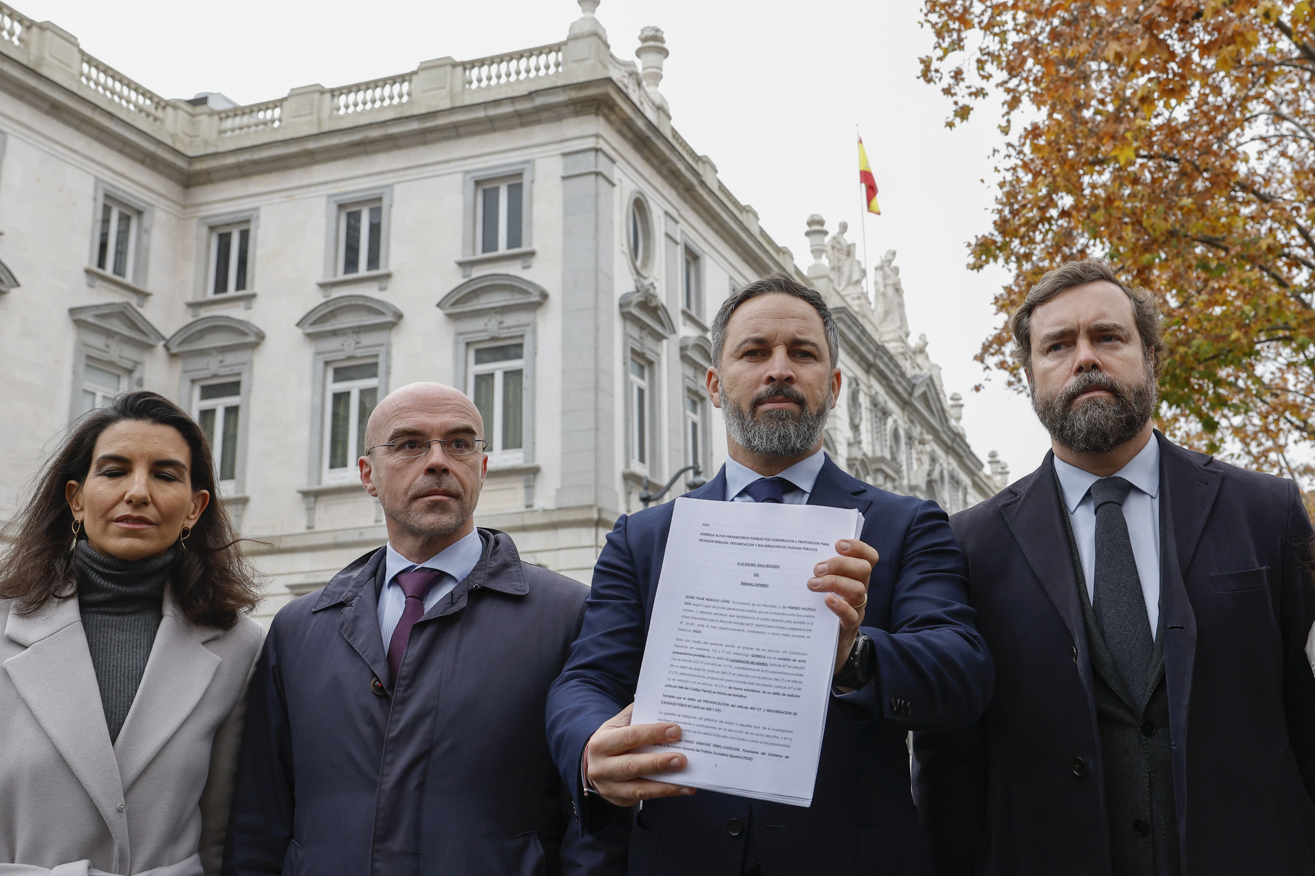 El líder de Vox ha recordado que antes del golpe de Estado de 2017 Vox ya presentó una querella por los mismos delitos, que fue rechazada por los tribunales, pero sirvió para alertar de lo que iba ocurrir. Una vez se produjo el atentado contra el Estado de derecho, el partido regresó de nuevo a los tribunales, lo que permitió la condena de los golpistas por sedición, después de que los jueces rechazaran la rebelión.