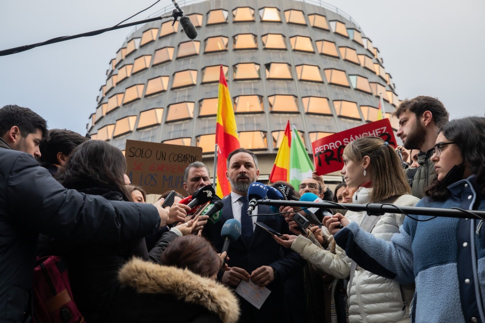 Vox sigue trabajando en la presentación de la moción de censura contra Pedro Sánchez pero deja en el aire su registro hasta lograr el apoyo del PP, para evitar que se interprete como una medida contra el partido de Alberto Núñez Feijóo. Su objetivo, ha defendido Santiago Abascal esta mañana, es "retratar al Gobierno con sus socios golpistas" y no "acabar retratando al PP junto al PSOE repartiéndose, de nuevo, el CGPJ y el TC".