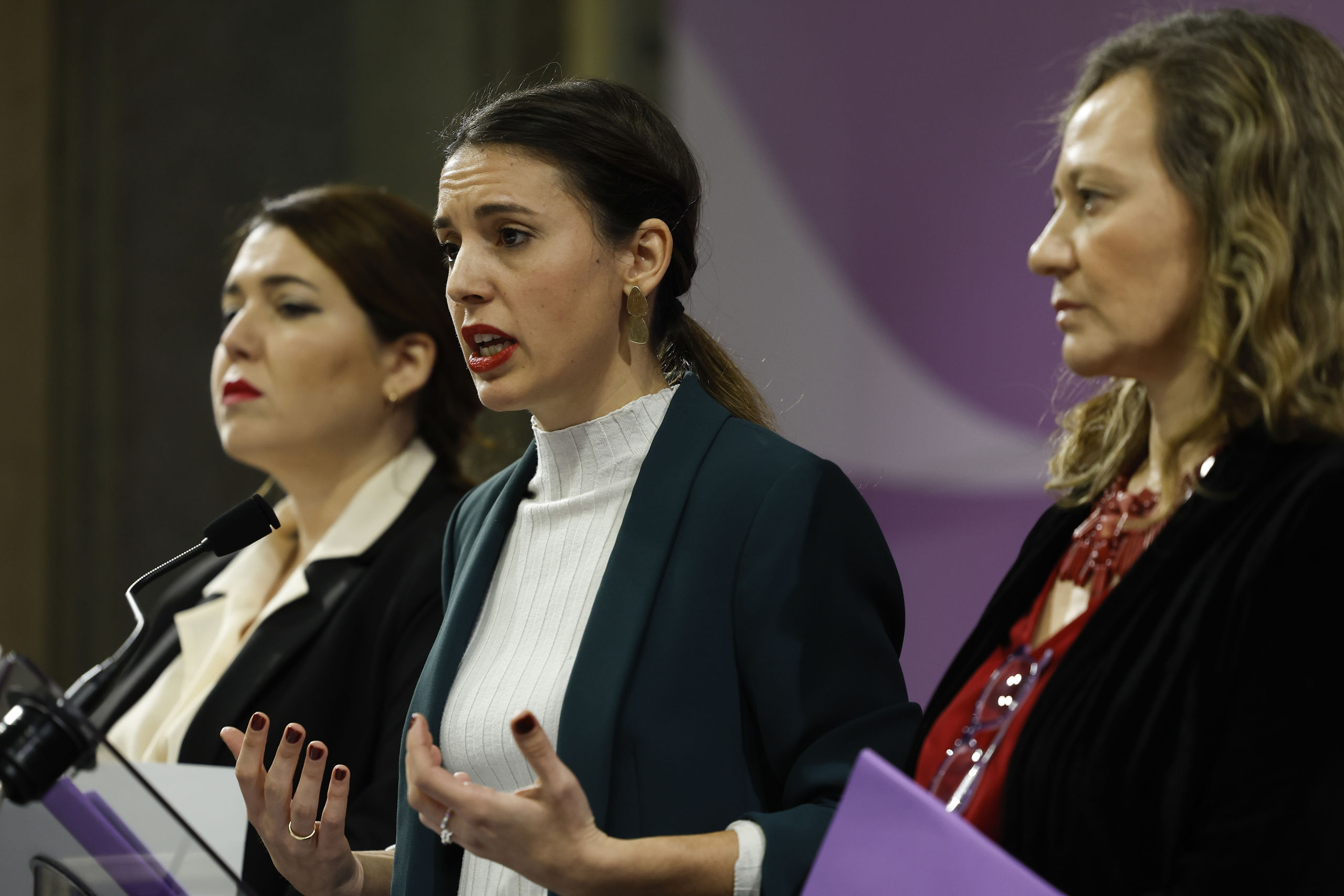 Ione Belarra, líder de la formación morada, se ha quejado de las presiones para reformar la ley, sin referirse a las consecuencias negativas que la aprobación de la misma ha tenido: "Se redobla la presión de la derecha judicial y mediática para volver al modelo anterior del PP".