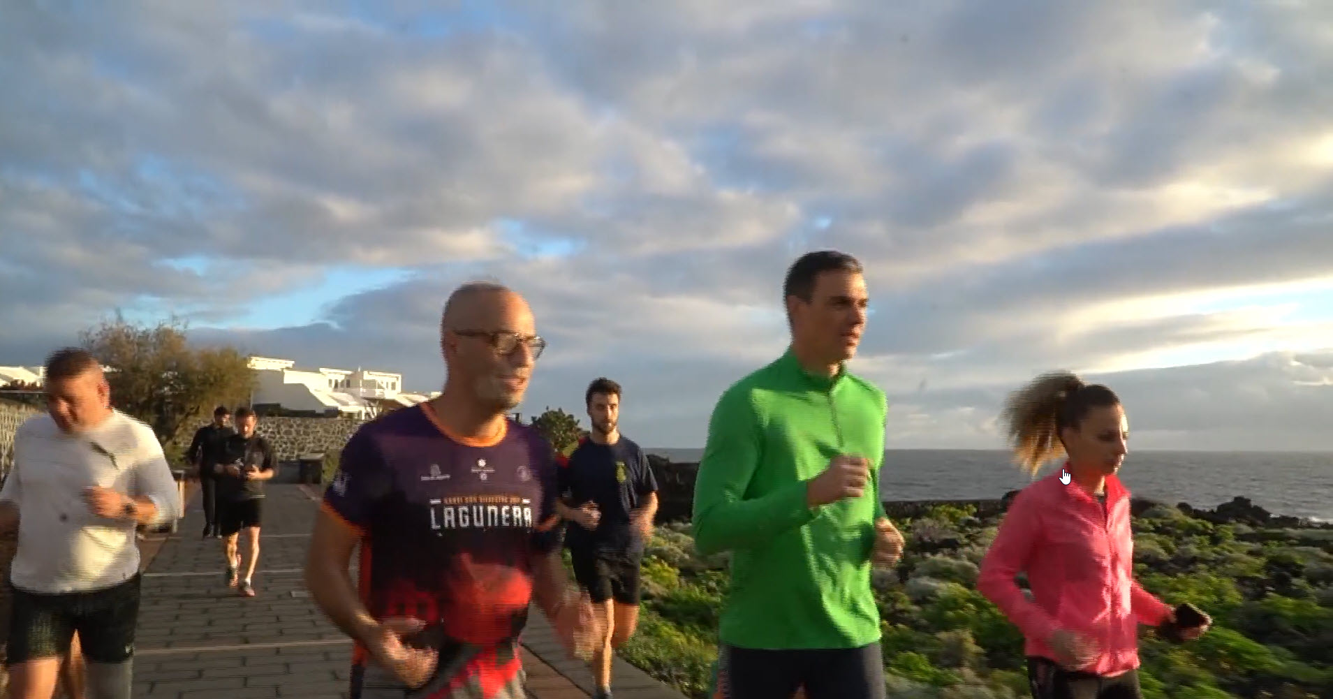 En su cuenta oficial de Twitter, Sánchez ha publicado un vídeo de apenas un minuto de duración en el que se le ve corriendo junto a varias personas con el mar a su izquierda. Un vídeo en el que se puede escuchar cómo le saluda una vecina o cómo el propio presidente habla del Teide y de lo "espectacular" del paisaje.