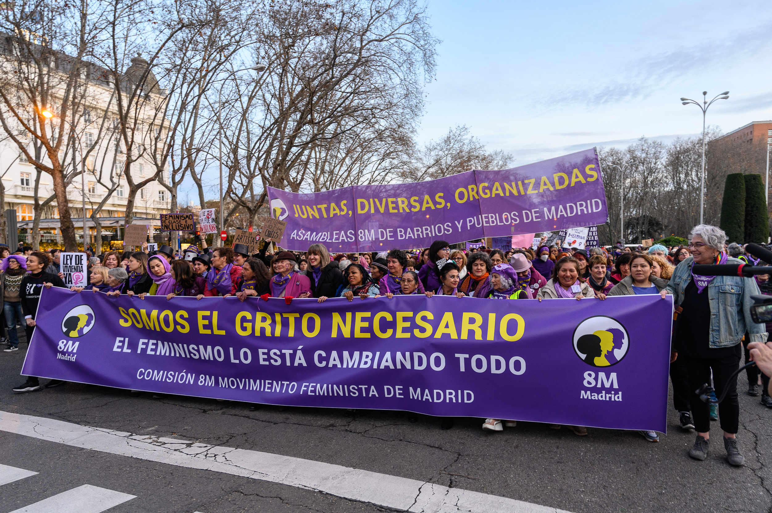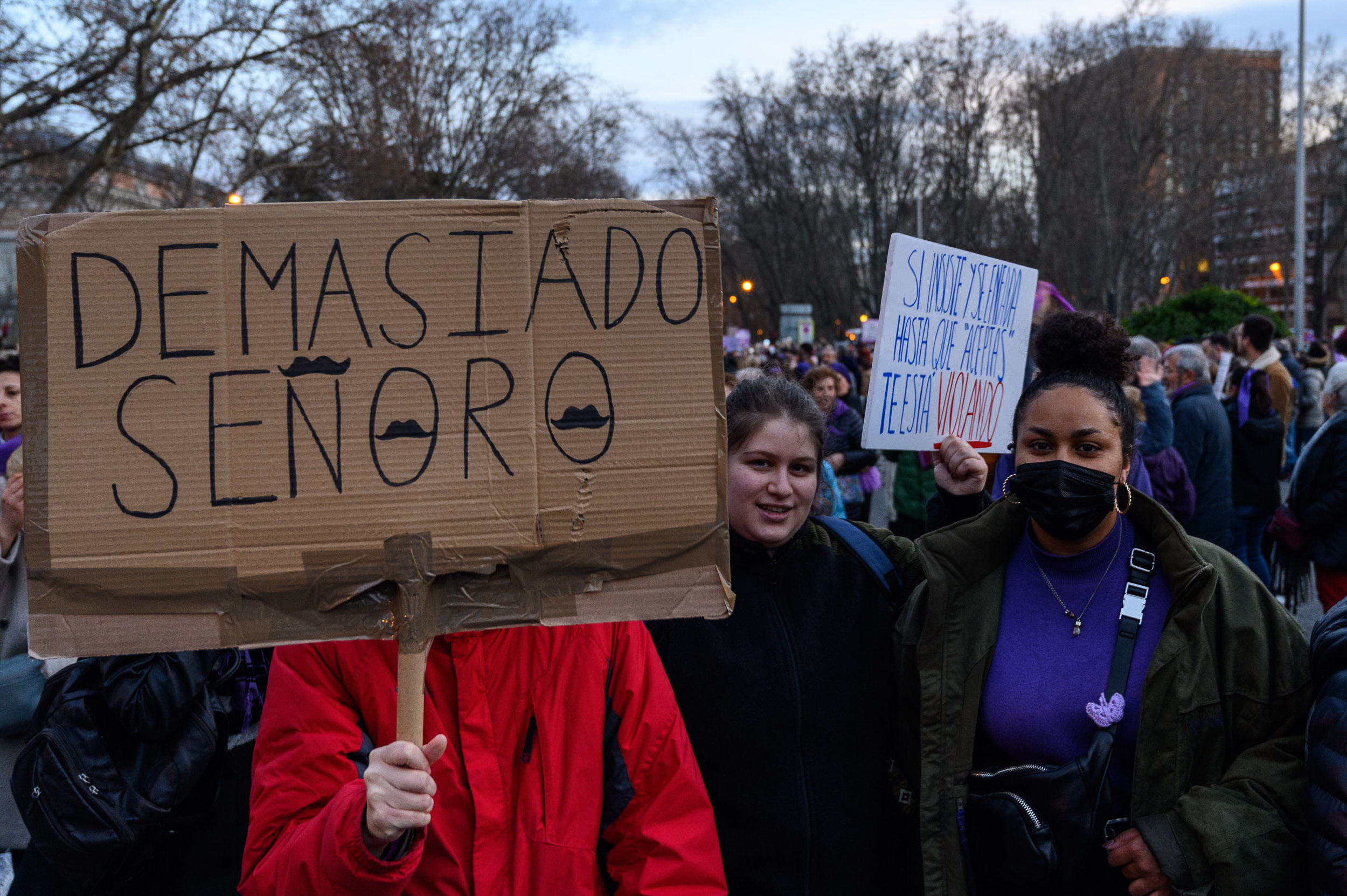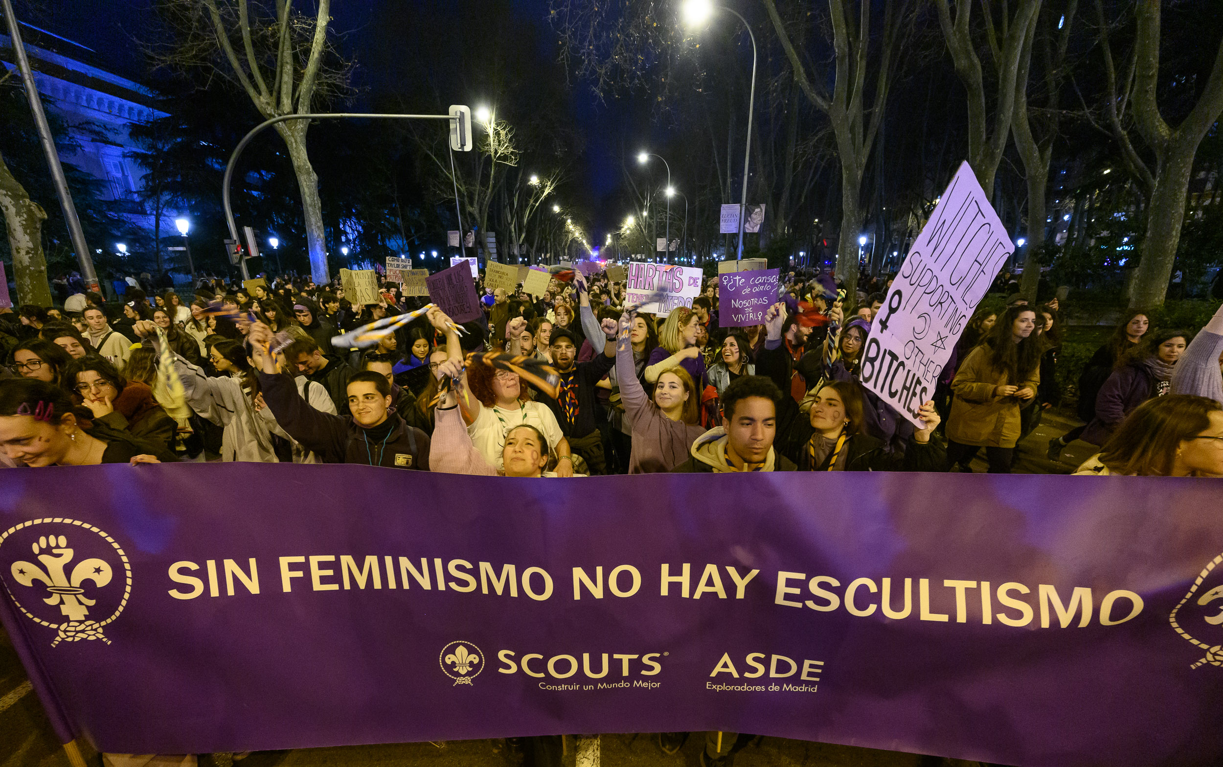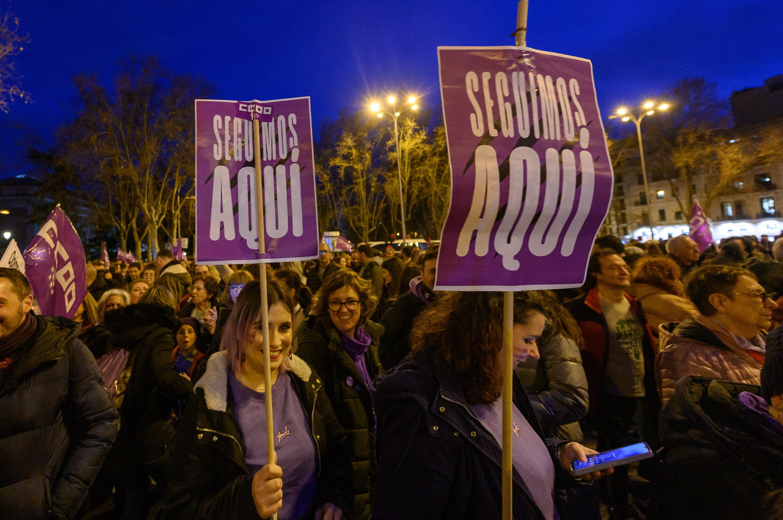 8-M: Las ministras marchan divididas entre gritos de "corruptos, ladrones, liberan violadores"