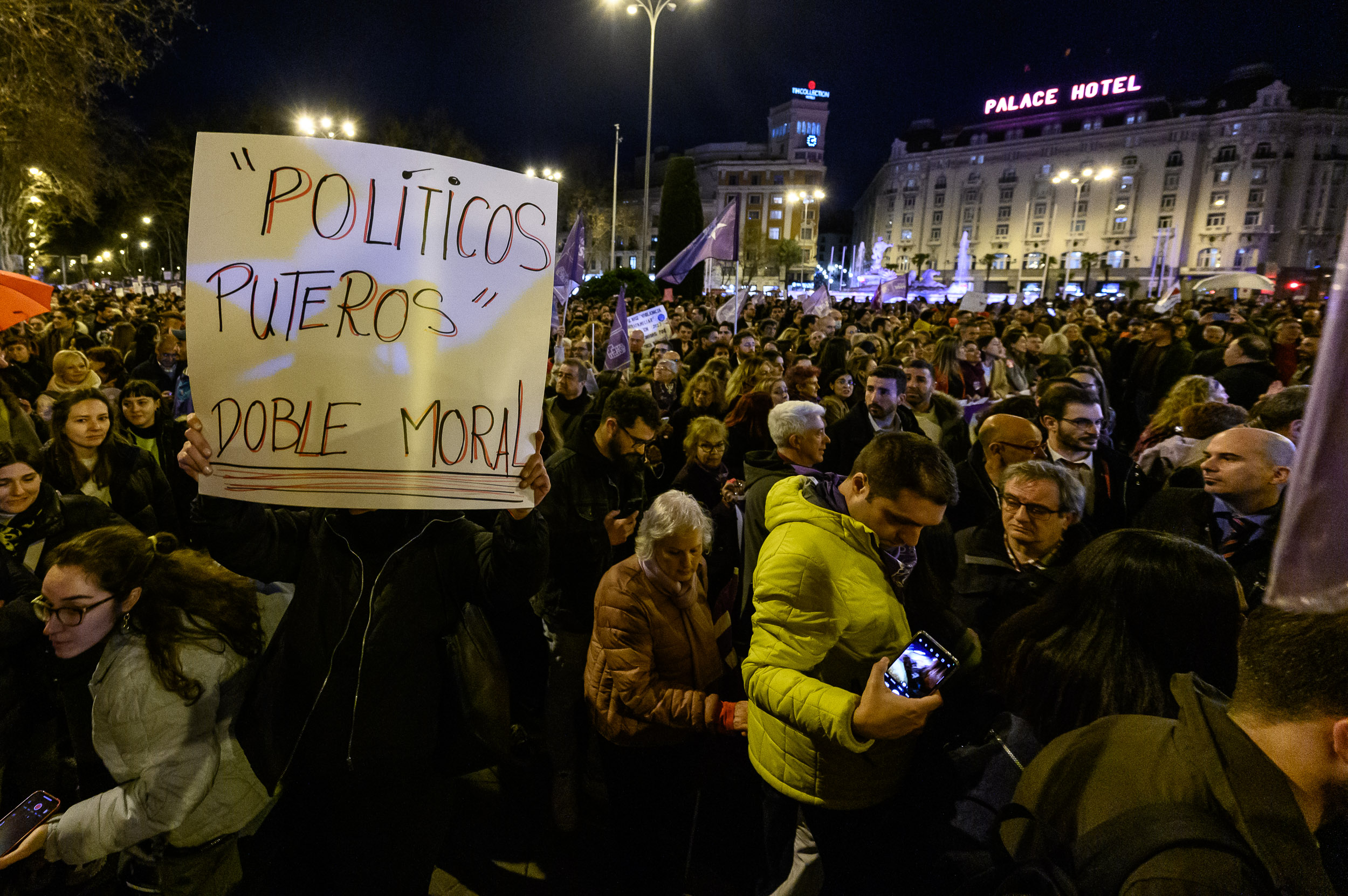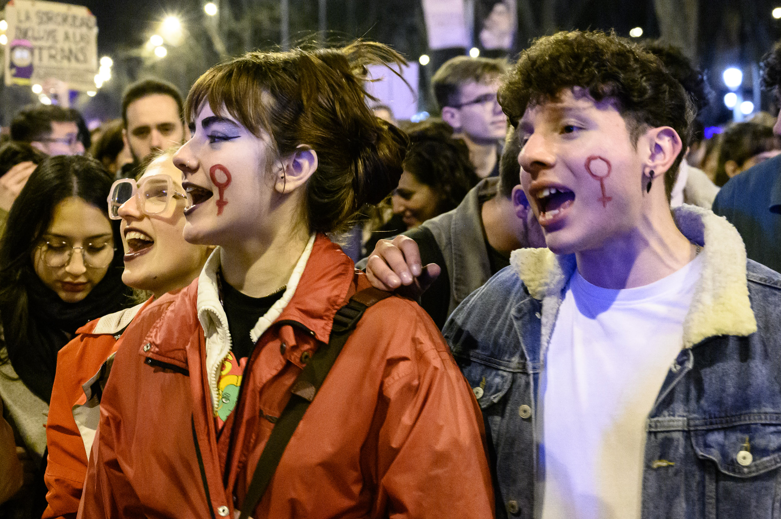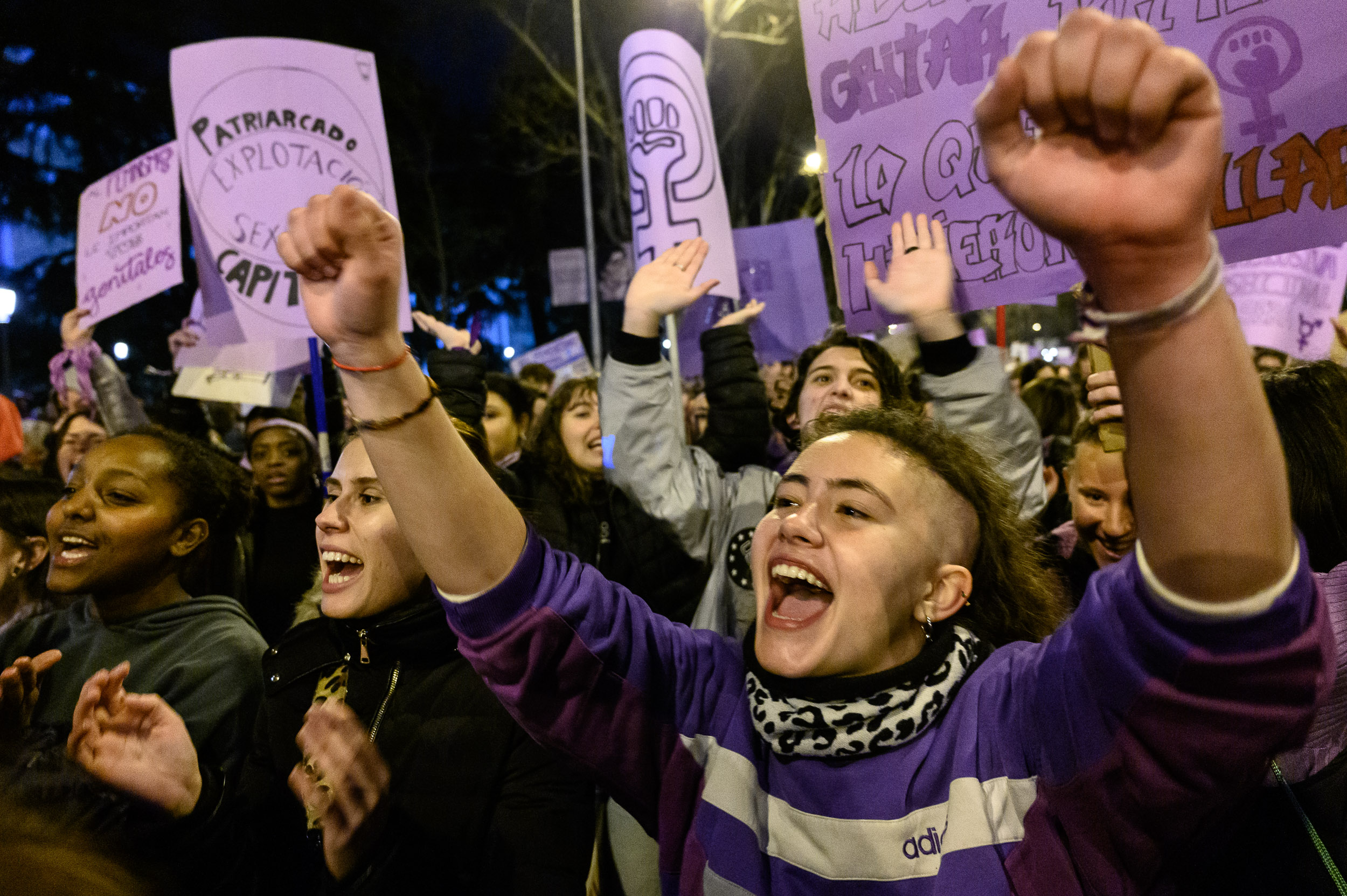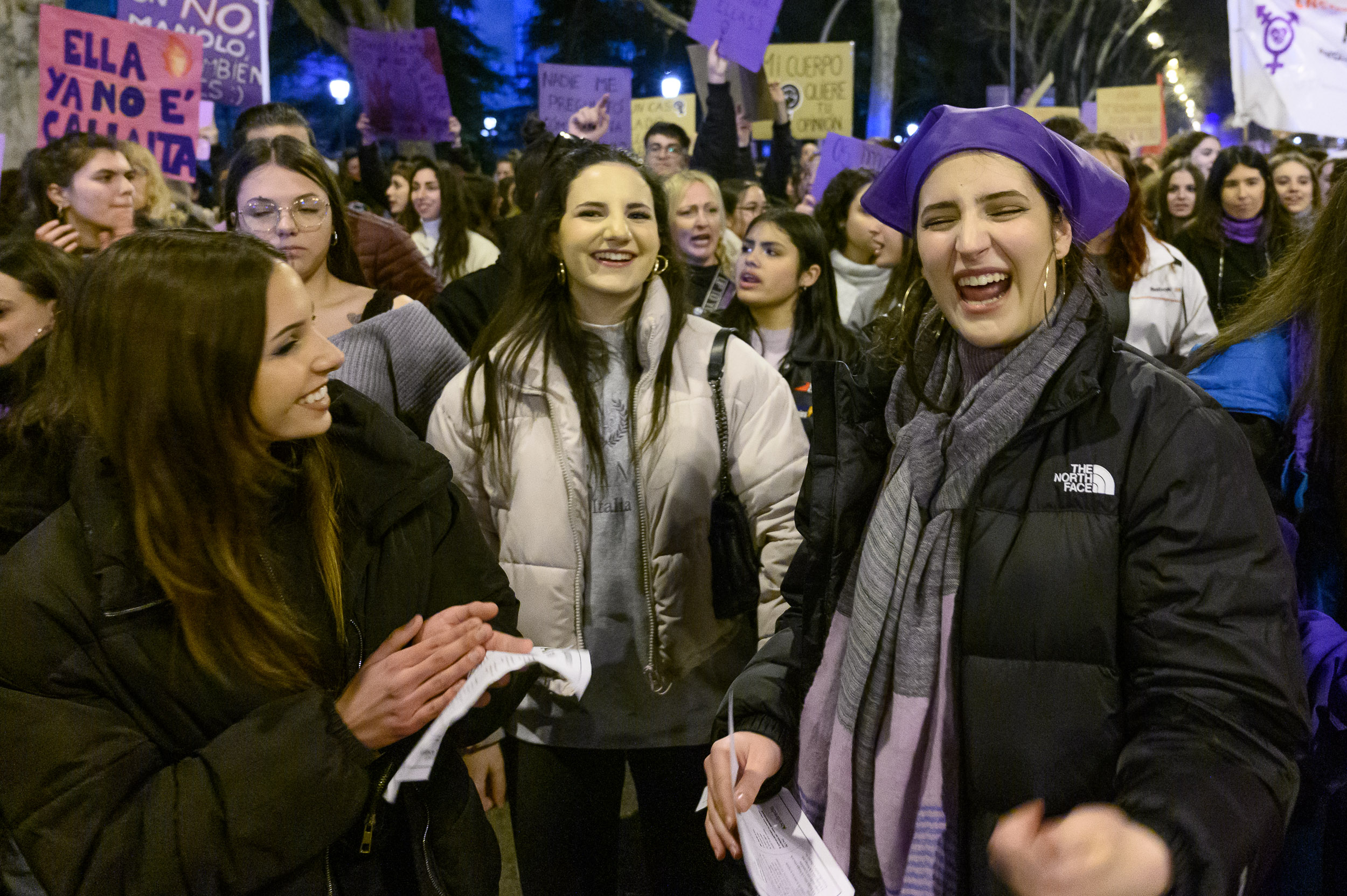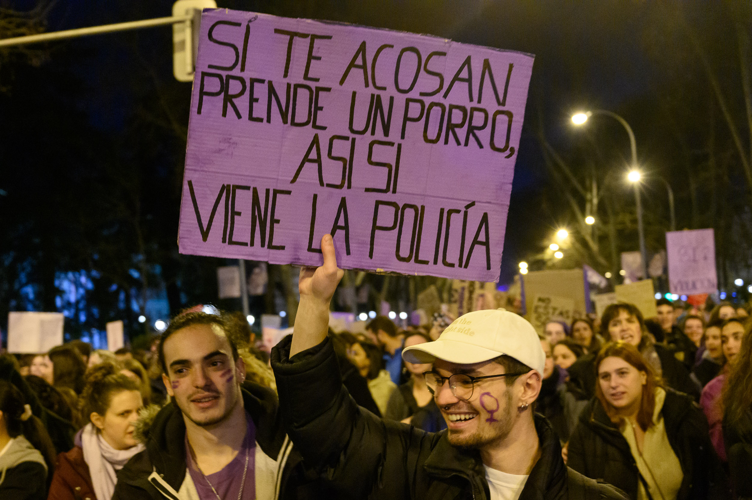 8-M: Las ministras marchan divididas entre gritos de "corruptos, ladrones, liberan violadores"