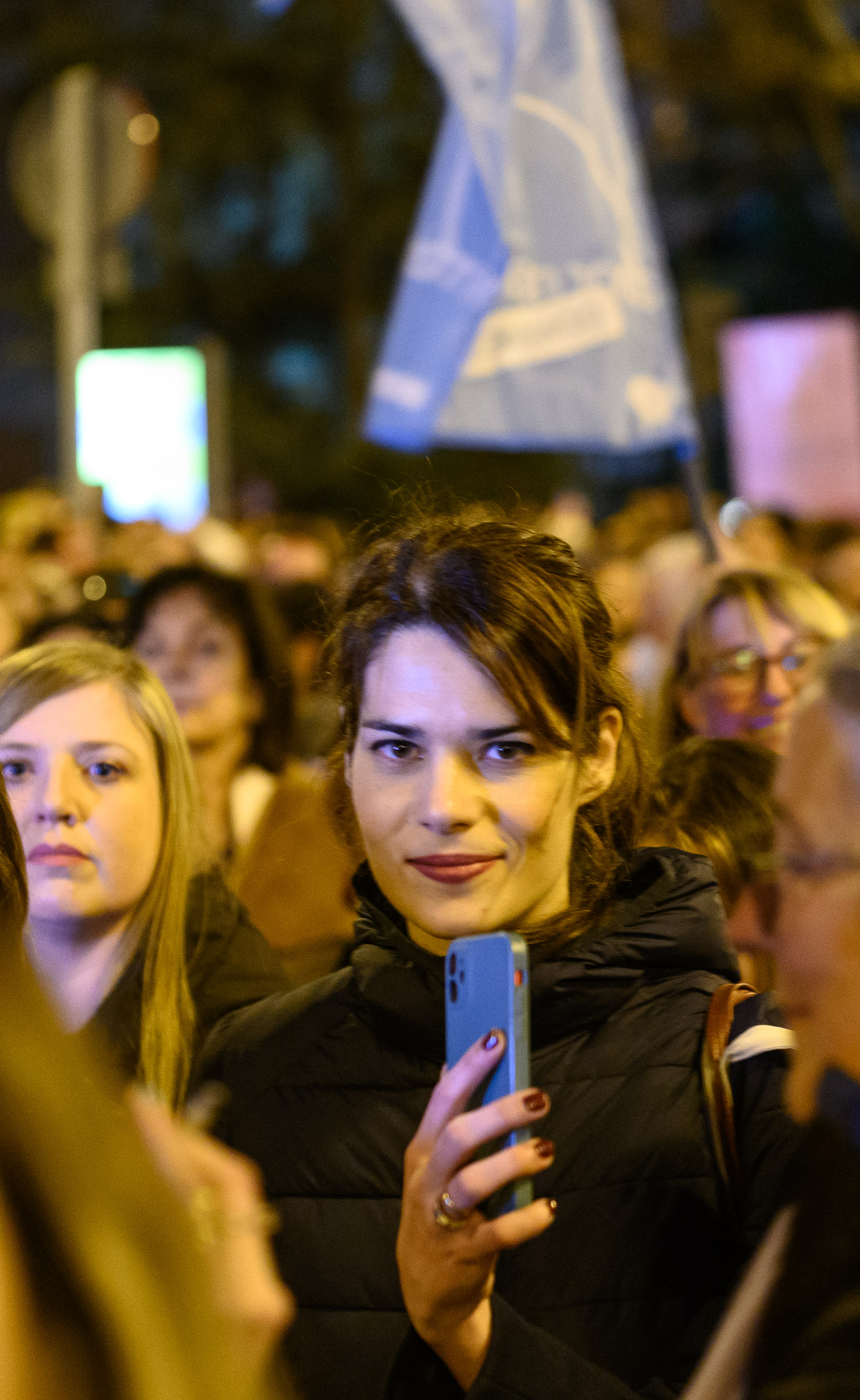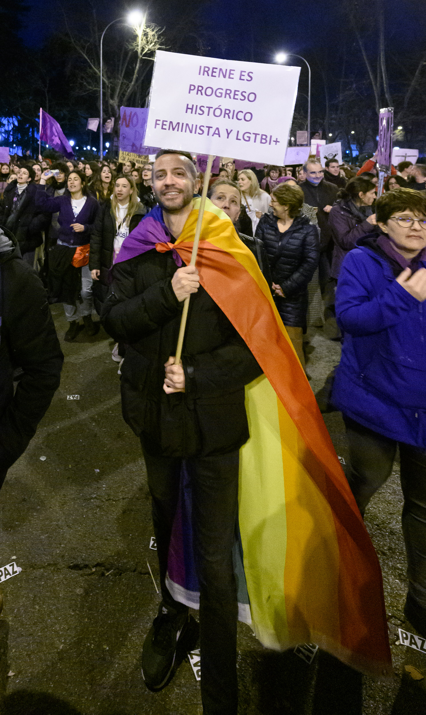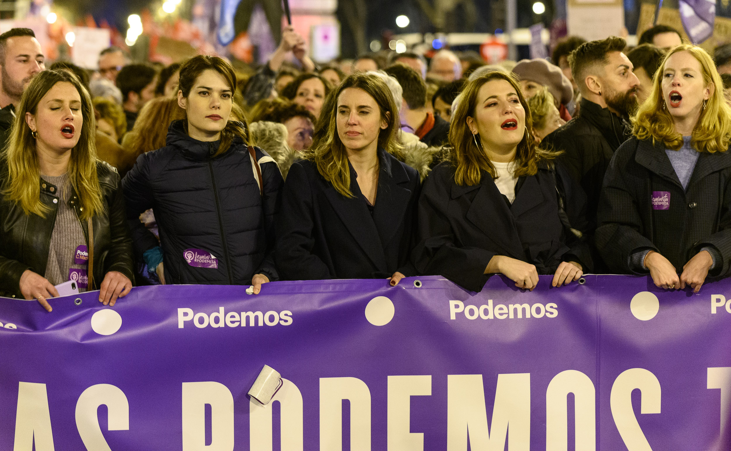 La plana mayor de Igualdad encabezaba el sector podemita de la manifestación, al grito de "¡si tocan a Irene nos tocan a todas!".