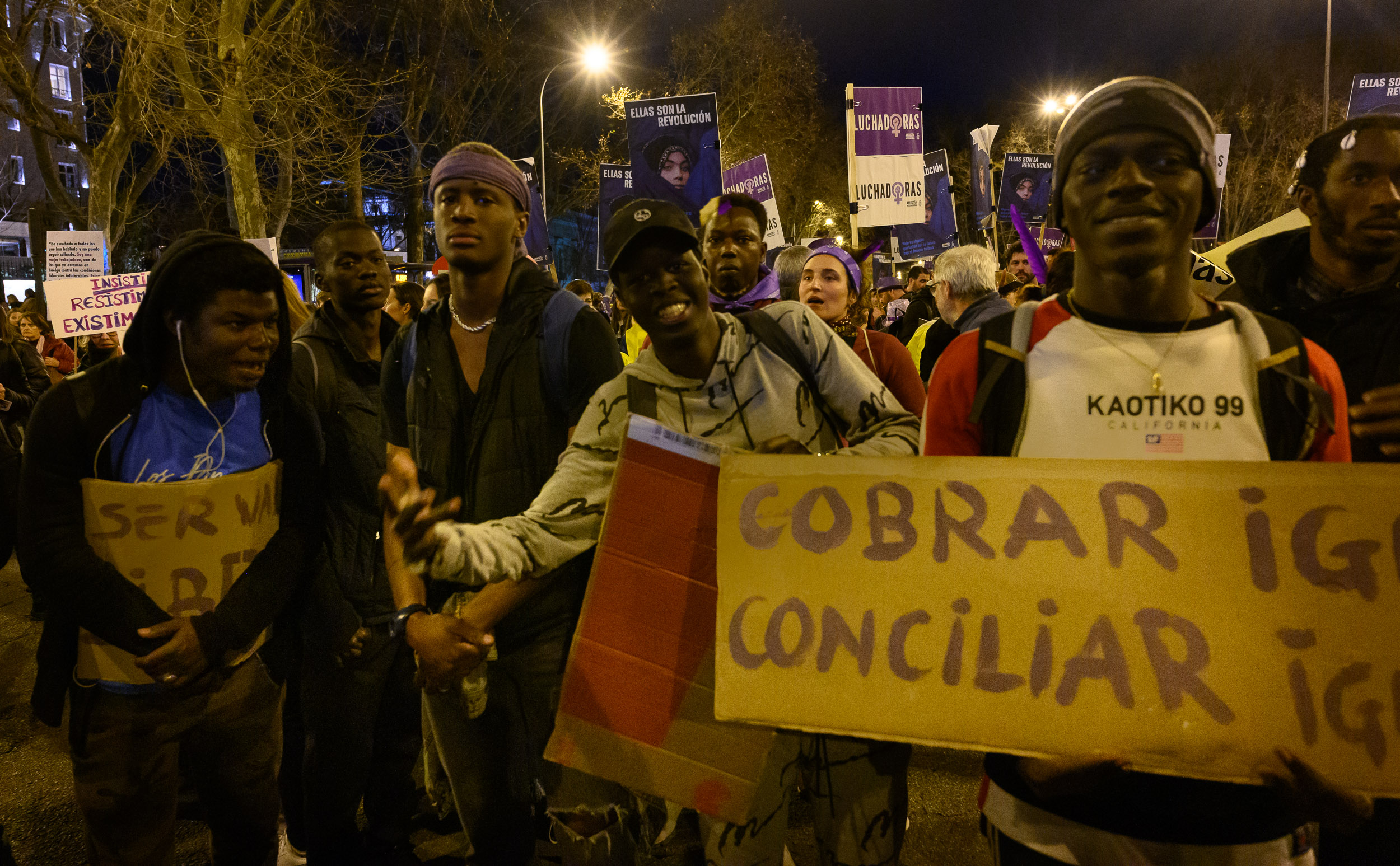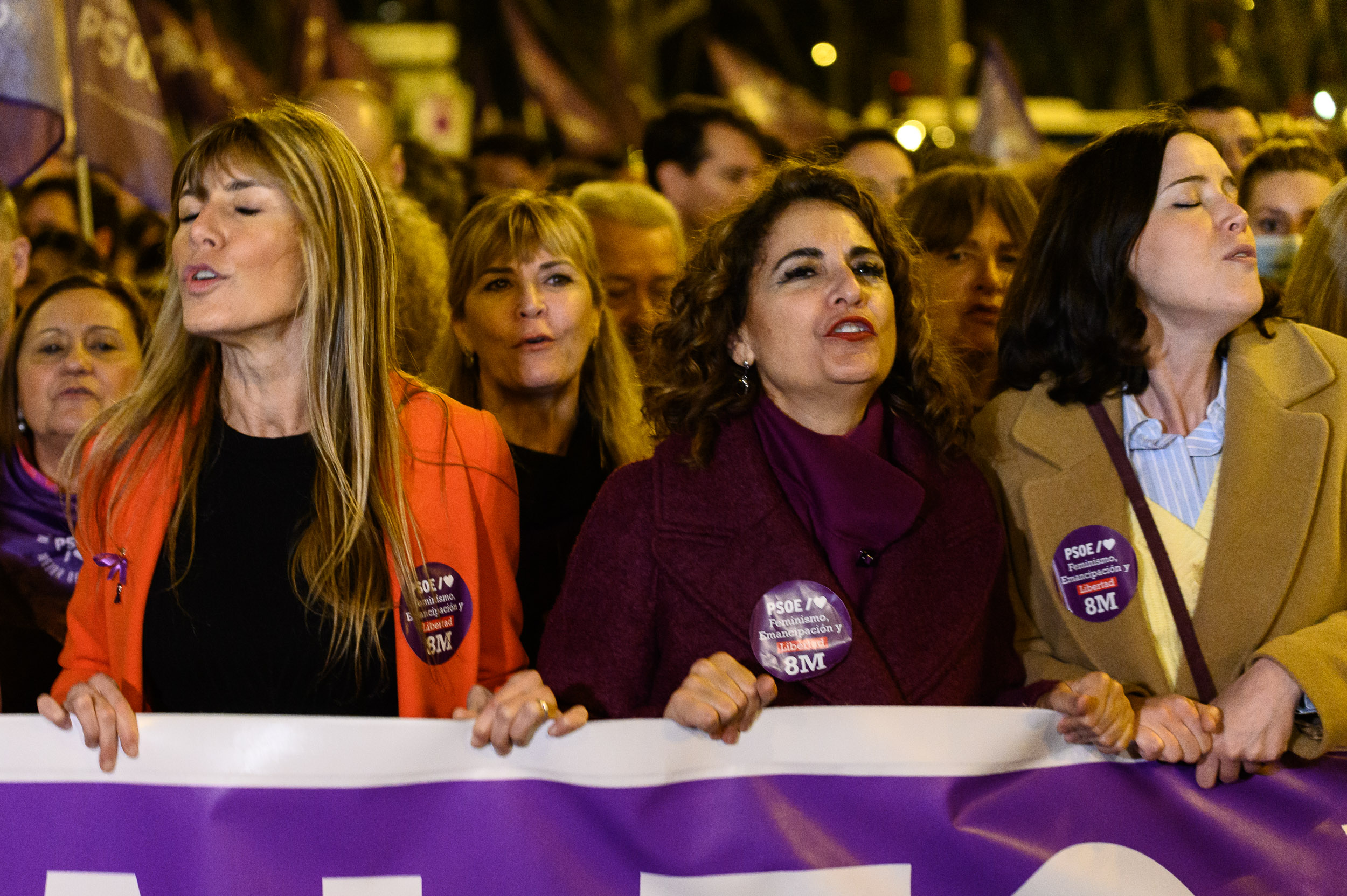 La plana mayor del PSOE y el Gobierno, acompañadas de Begoña Gómez que como todos los años ha estado en la manifestación en su calidad de mujer de.
