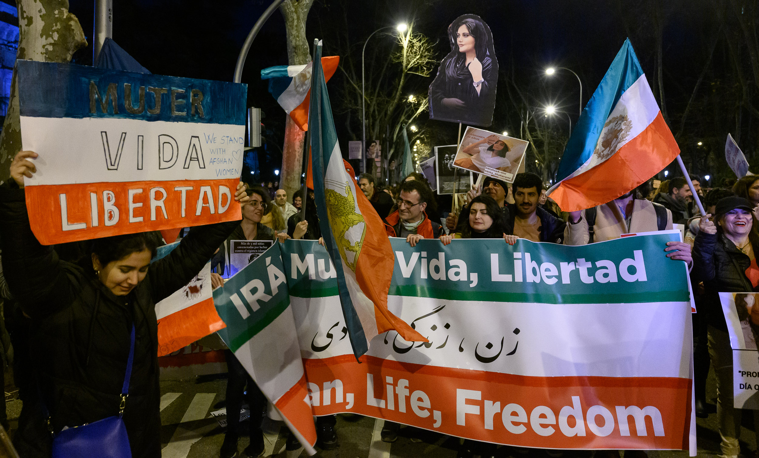 Ante la indiferencia general un pequeño grupo de personas han recordado que las mujeres que sí estan luchando de verdad por la libertad y la vida son las iraníes.