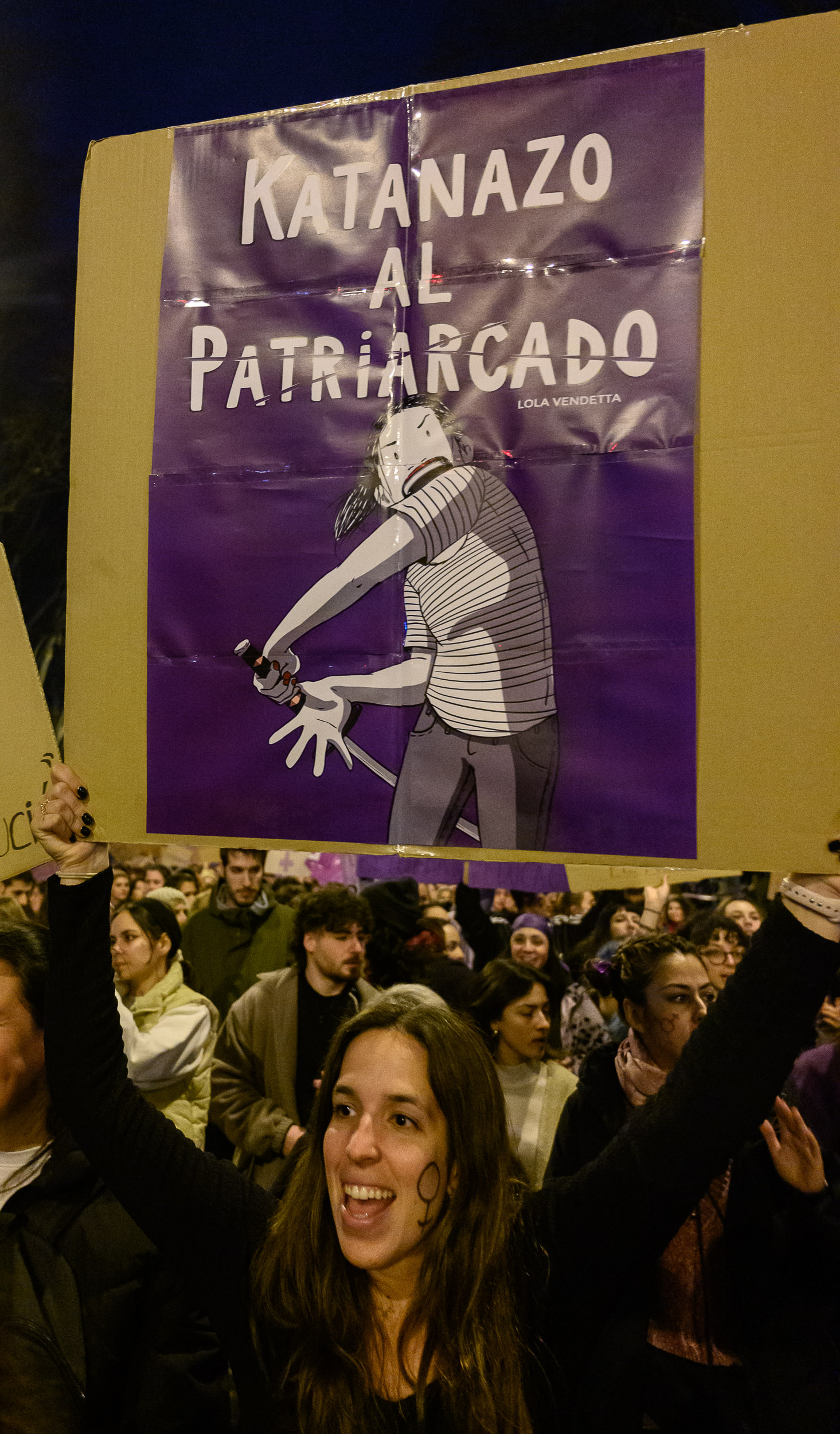 Dos jóvenes aportando el toque cultureta a la manifestación para que no todo fuese "fuera rosarios de nuestros ovarios" y similares.