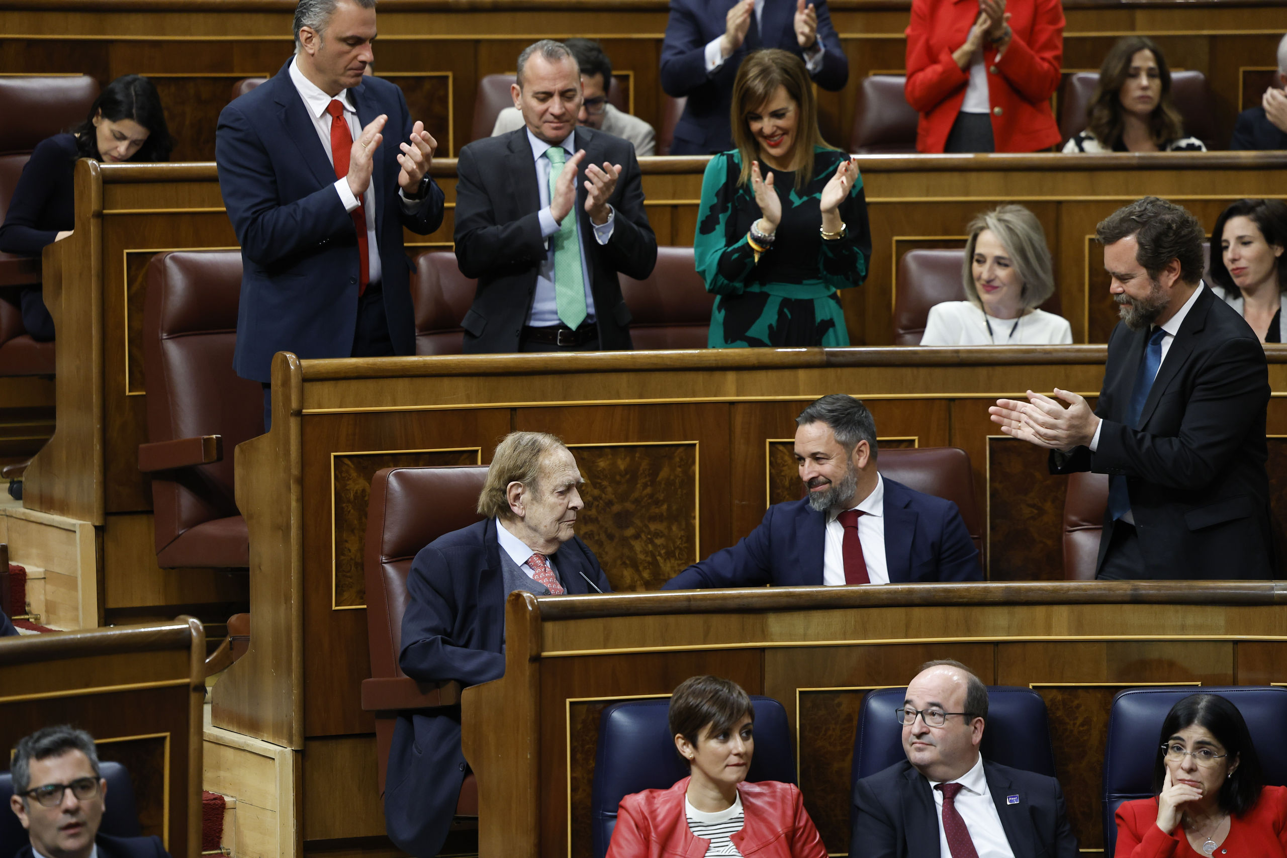 Los duros ataques de los portavoces del PSOE, Patxi López, de ERC, Gabriel Rufián, o de Compromís, Joan Baldoví, contra Tamames dieron a pie a que el candidato pudiera centrar sus réplicas en desmontar su habitual argumentario, dándoles de paso lecciones de Historia o, incluso, de respeto institucional, precisamente cuando Vox había sido tildado de frívolo por su uso partidista del Congreso.