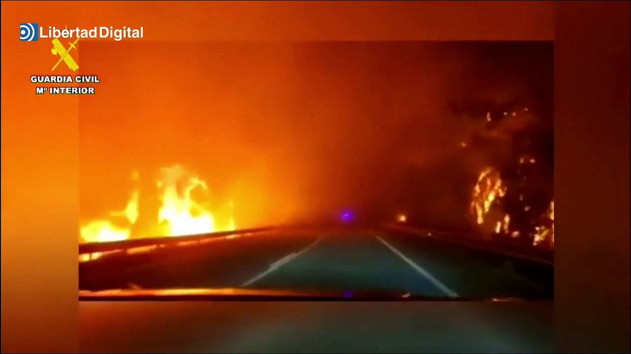 En mitad de una noche incandescente, las llamas flanquean la huida de los vecinos. A ambos lados del asfalto, el incendio amenaza con abalanzarse sobre los conductores que en tramos cubiertos de humo parecen adentrarse en un túnel sin salida. Ese fuego junto a la carretera llegó hasta las proximidades de una gasolinera de Quintana.