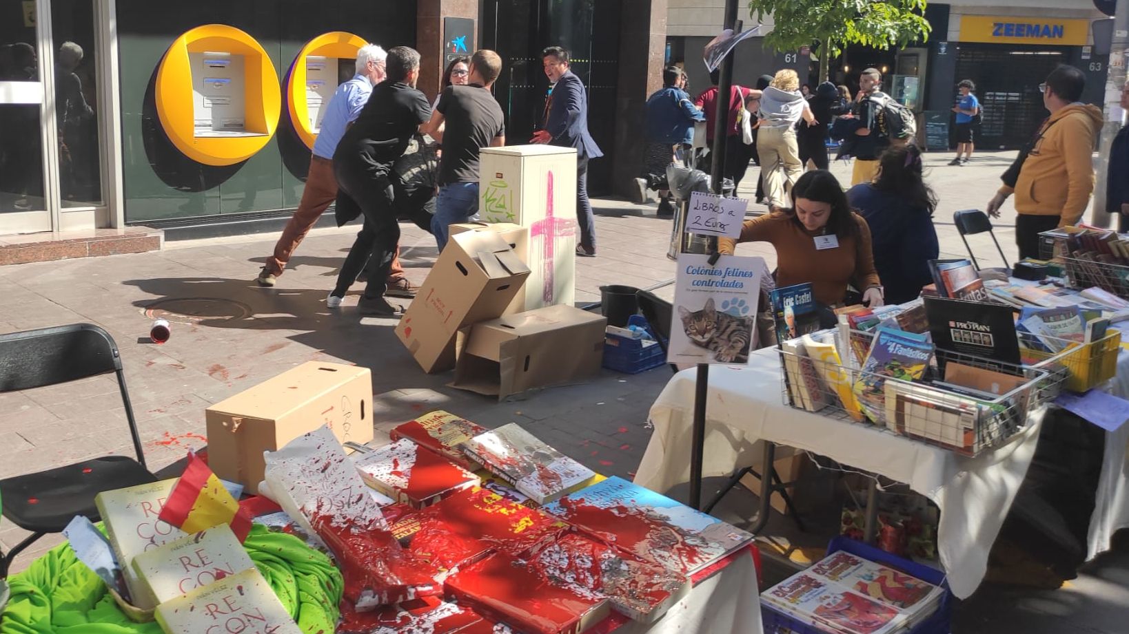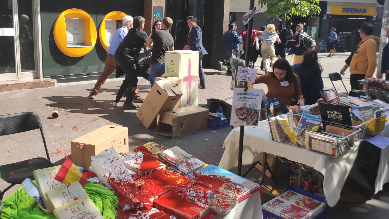 Como se recordará, este domingo fueron atacadas varias carpas de Vox instaladas en el marco de la celebración de la fiesta del libro y la rosa. Miembros y simpatizantes de Vox sufrieron agresiones, escrachas, insultos y amenazas en Igualada, Montcada, Vilassar, Rubí, Barberá, Sabadell, Lérida y Lloret de Mar, en el último caso a cargo del rapero Cecilio G. y su pareja en una acción que se viralizó en las redes sociales.