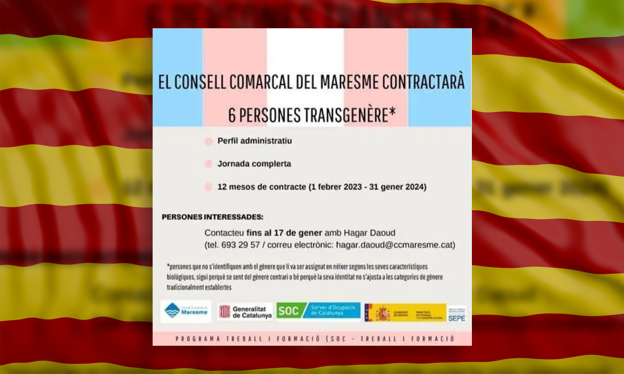 La polémica saltaba a la prensa el pasado mes de enero. "El Consejo Comarcal del Maresme contratará a 6 personas transgénero", rezaba la convocatoria, que aclaraba que el contrato en cuestión se extendería desde el 1 de febrero de 2023 hasta el 31 de enero de 2024. Para acreditar la condición de persona trans, únicamente se exigía una declaración jurada; ni haber cambiado de sexo en el Registro, ni contar con informes médicos de ningún tipo. Y eso es precisamente lo que indignaba a la asociación L´Escola A.C,, que advertía de la imposibilidad de evitar el "fraude".