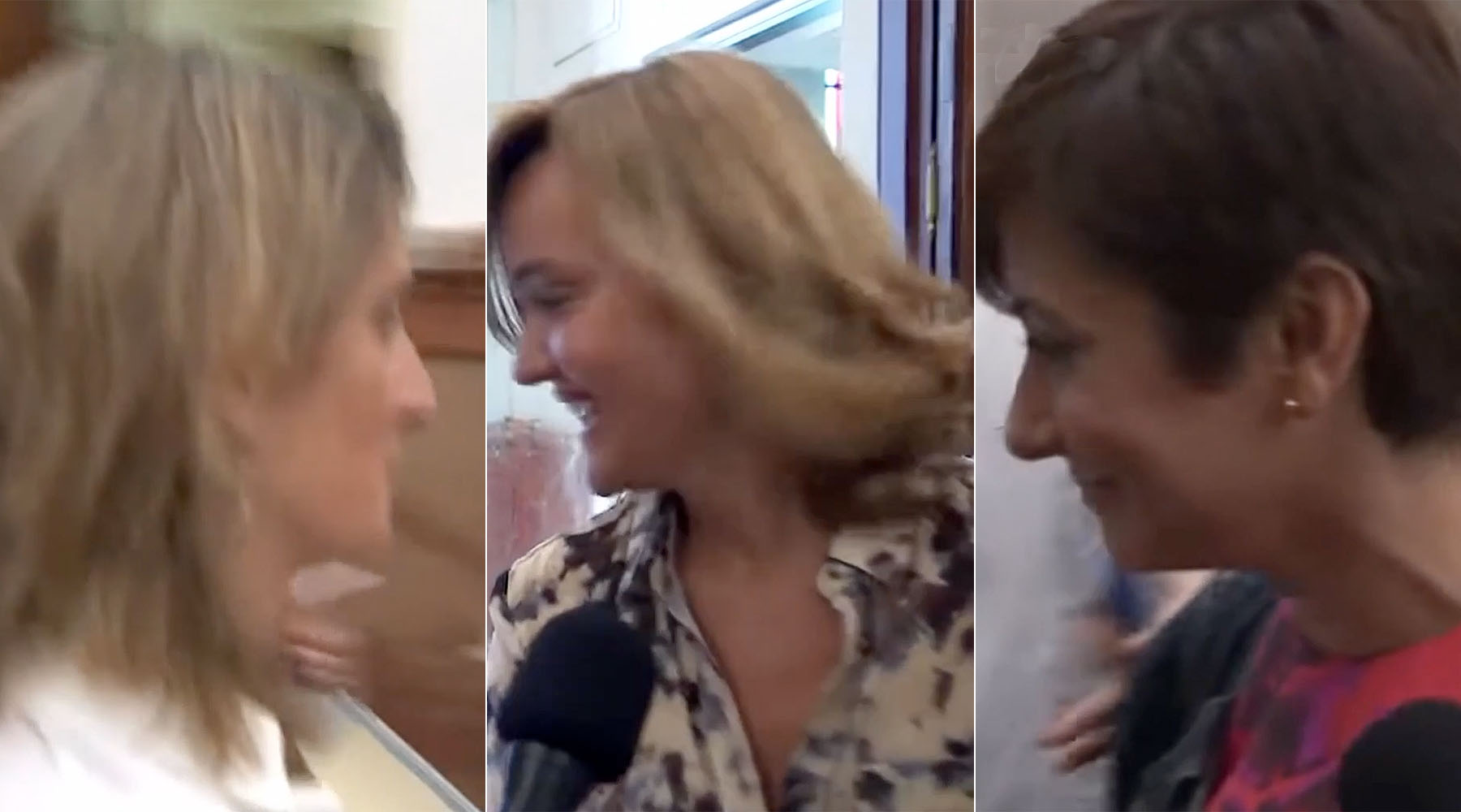 También la ministra de Hacienda, María Jesús Montero, fingía un encontronazo casual con la vicepresidenta Yolanda Díaz cuando atendía a los medios para zafarse de la pregunta sobre el partido del terrorista Arnaldo Otegi. Ni siquiera la portavoz proetarra, Merche Aizpurúa, atendía esta mañana a la prensa, a los que suele responder gustosamente en otras ocasiones.