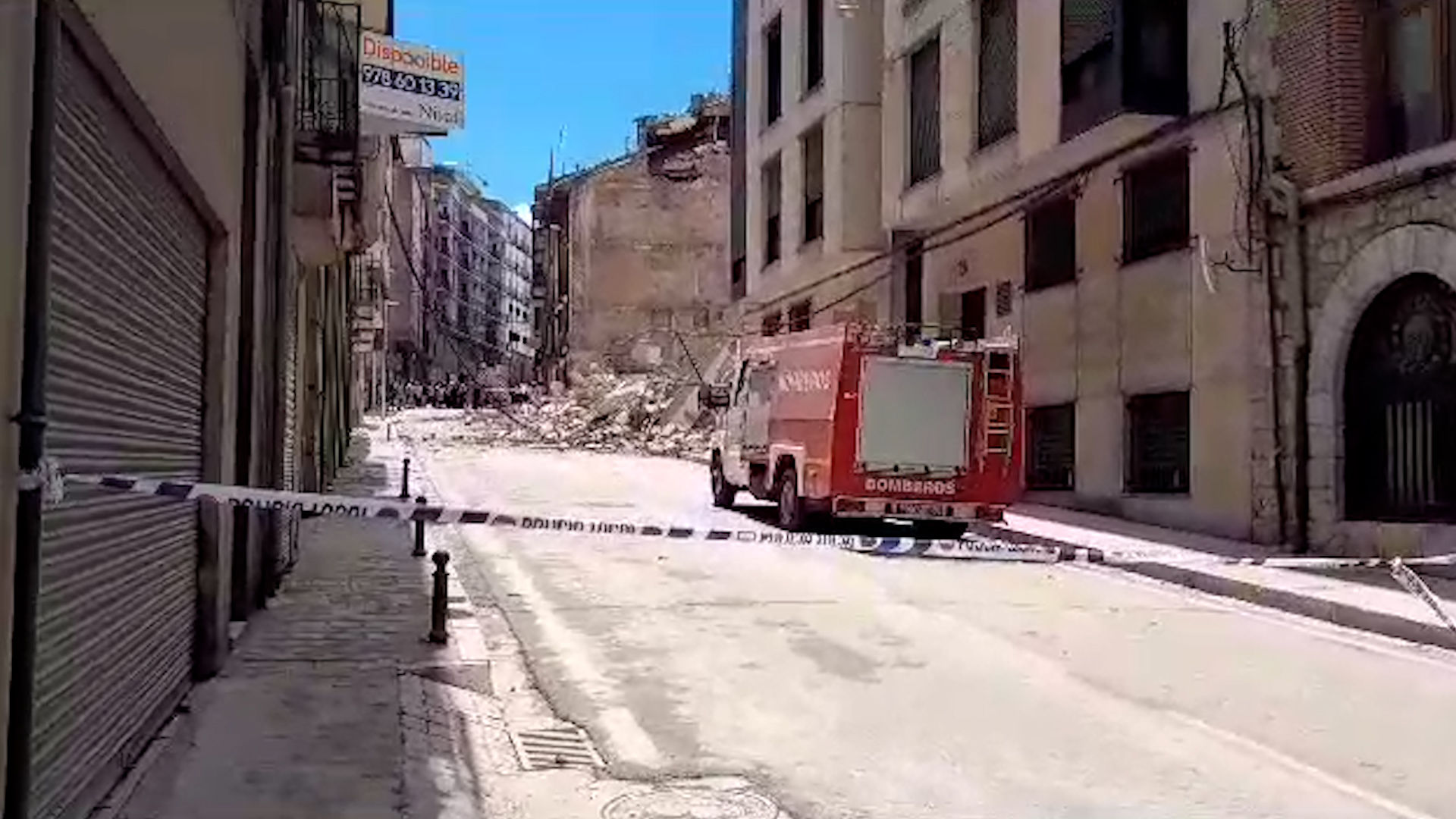 Un edificio de cinco plantas y con unas 21 viviendas, situado en la calle de San Francisco de la capital turolense, se ha derrumbado en la mañana de este martes por completo, aunque no se han producido daños personales.
