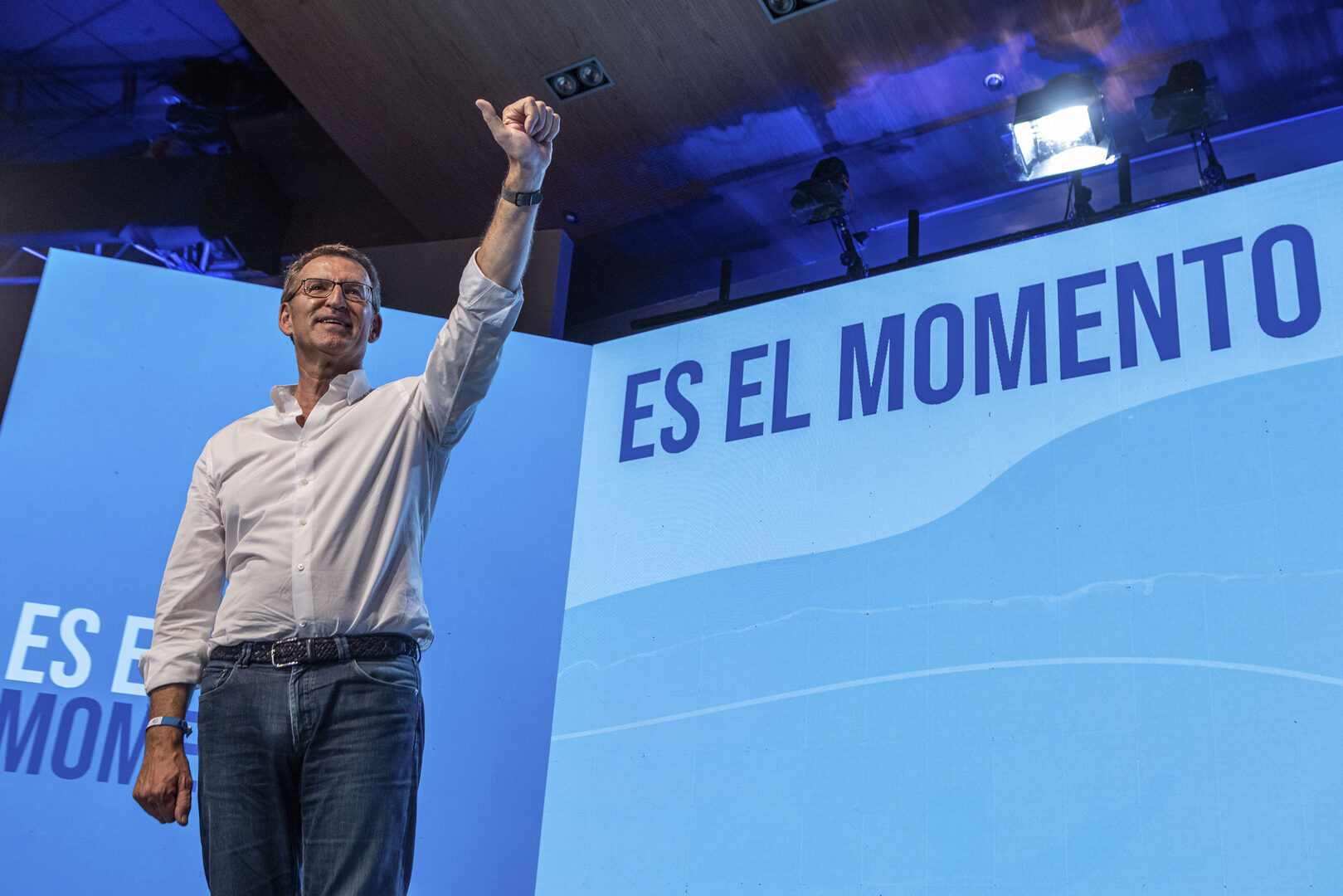 Alberto Núñez Feijóo reitera su aspiración de lograr una "amplia mayoría" para gobernar en solitario pero, por primera vez, ha dado una cifra concreta a partir de la cual forzará a Vox a dejarle gobernar en solitario: los 150-160 escaños, es decir, por debajo de la absoluta que se sitúa en los 176 diputados.