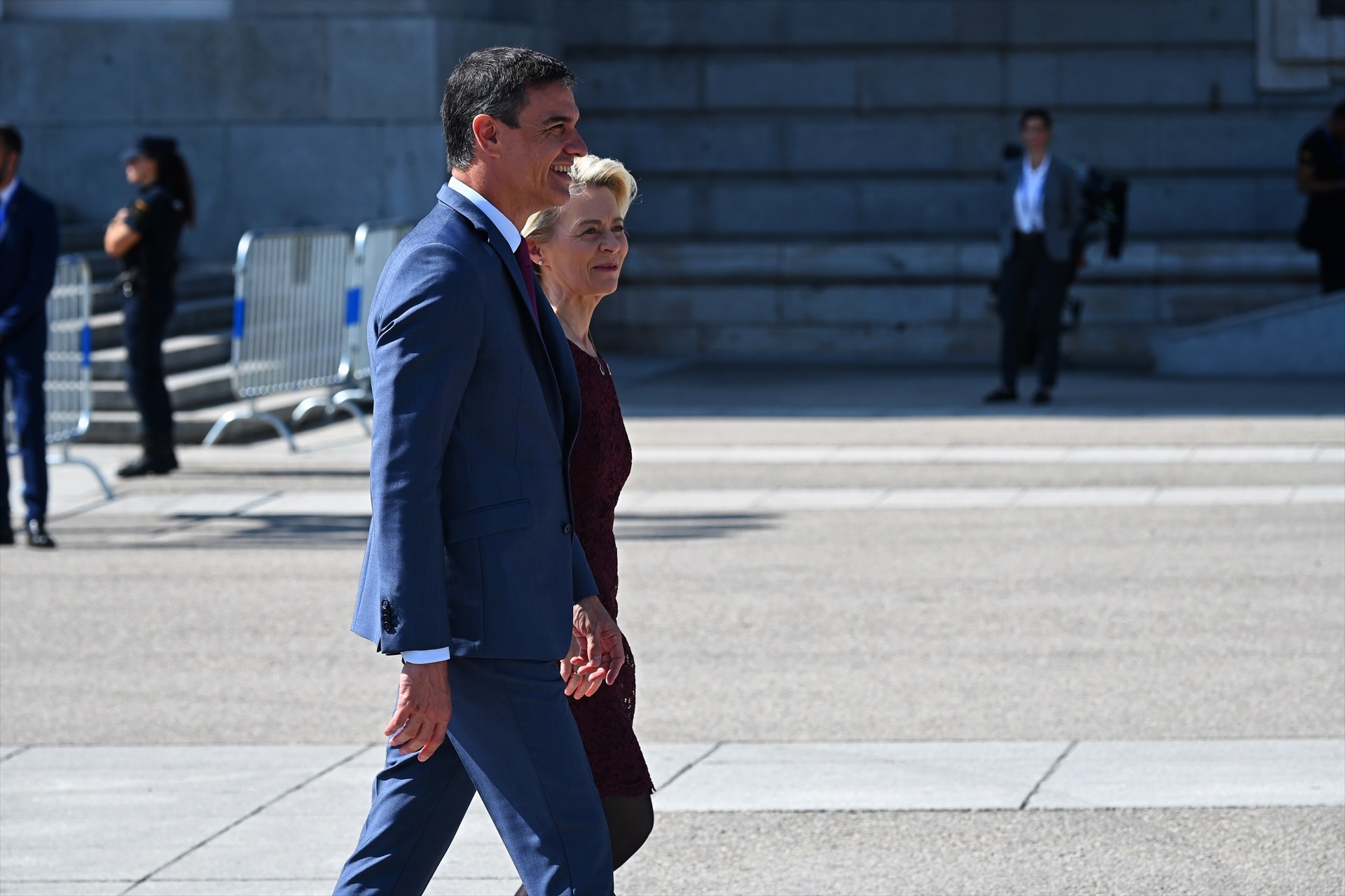 En un marco del flamante museo de Galerías de las Colecciones Reales, entre el Palacio Real y la Almudena, y con Madrid Río como fondo, la presidenta de la Comisión Europea, Ursula von der Leyen, ha alertado ante Pedro Sánchez del aumento de "extremismos de izquierda y derecha".