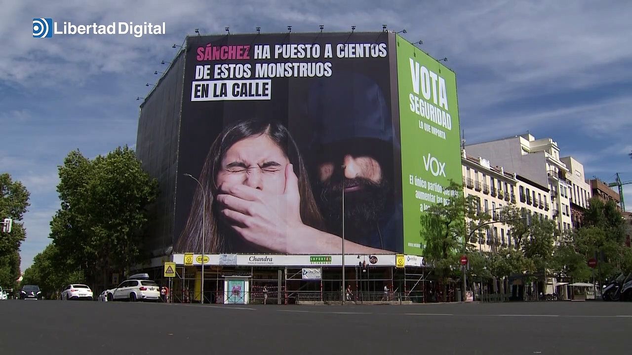 Vox ha colgado una nueva lona en el centro de Madrid con motivo de las elecciones generales del próximo 23 de julio, en esta ocasión arremetiendo contra el presidente del Gobierno, Pedro Sánchez, con motivo de la ley del 'solo sí es sí'.
