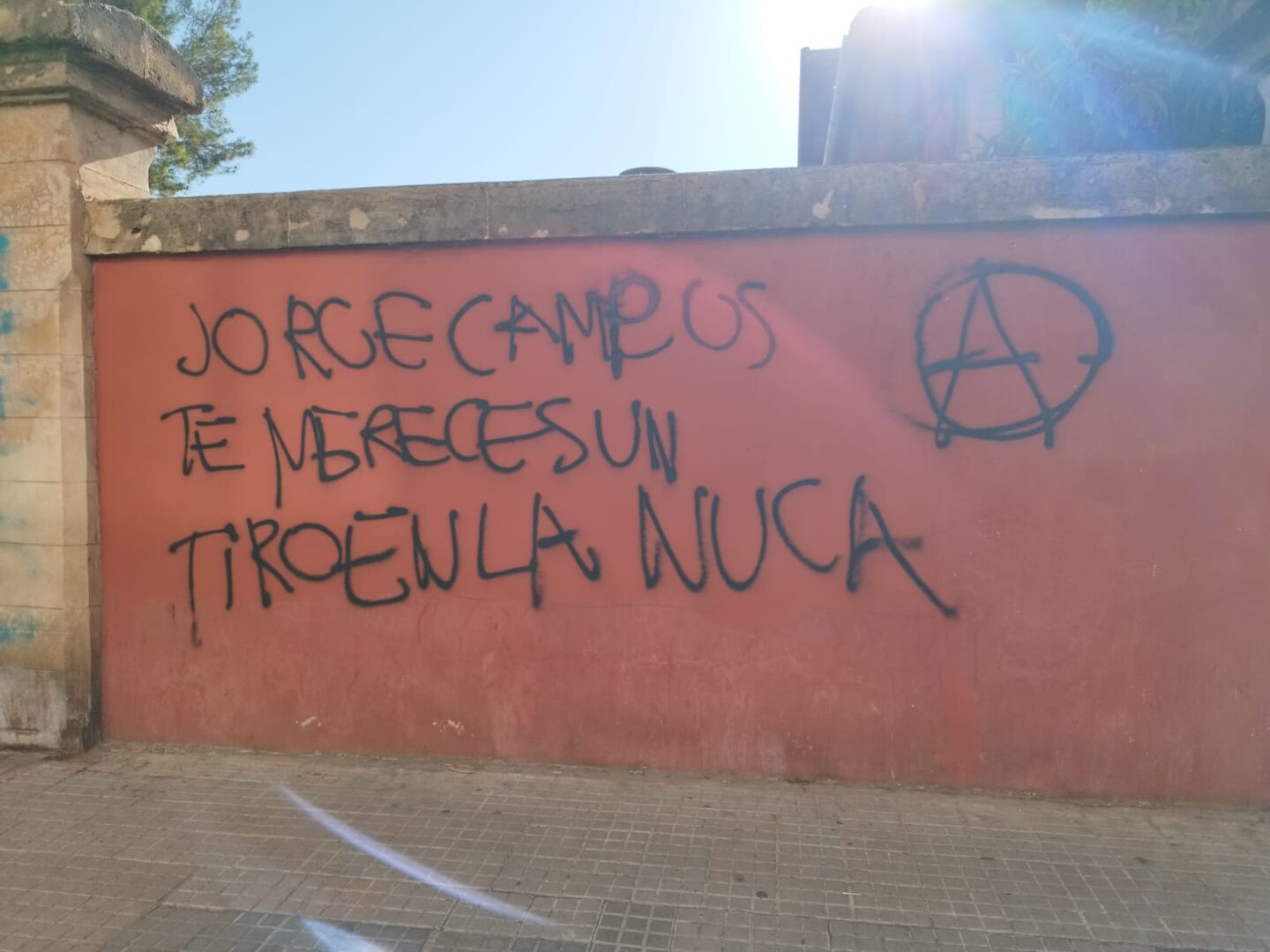 Jorge Campos, el número uno de Vox al Congreso por Baleares, se ha despertado esta mañana con la pintada "Jorge Campos, te mereces un tiro en la nuca" en una pared cercana a su casa en Palma.
