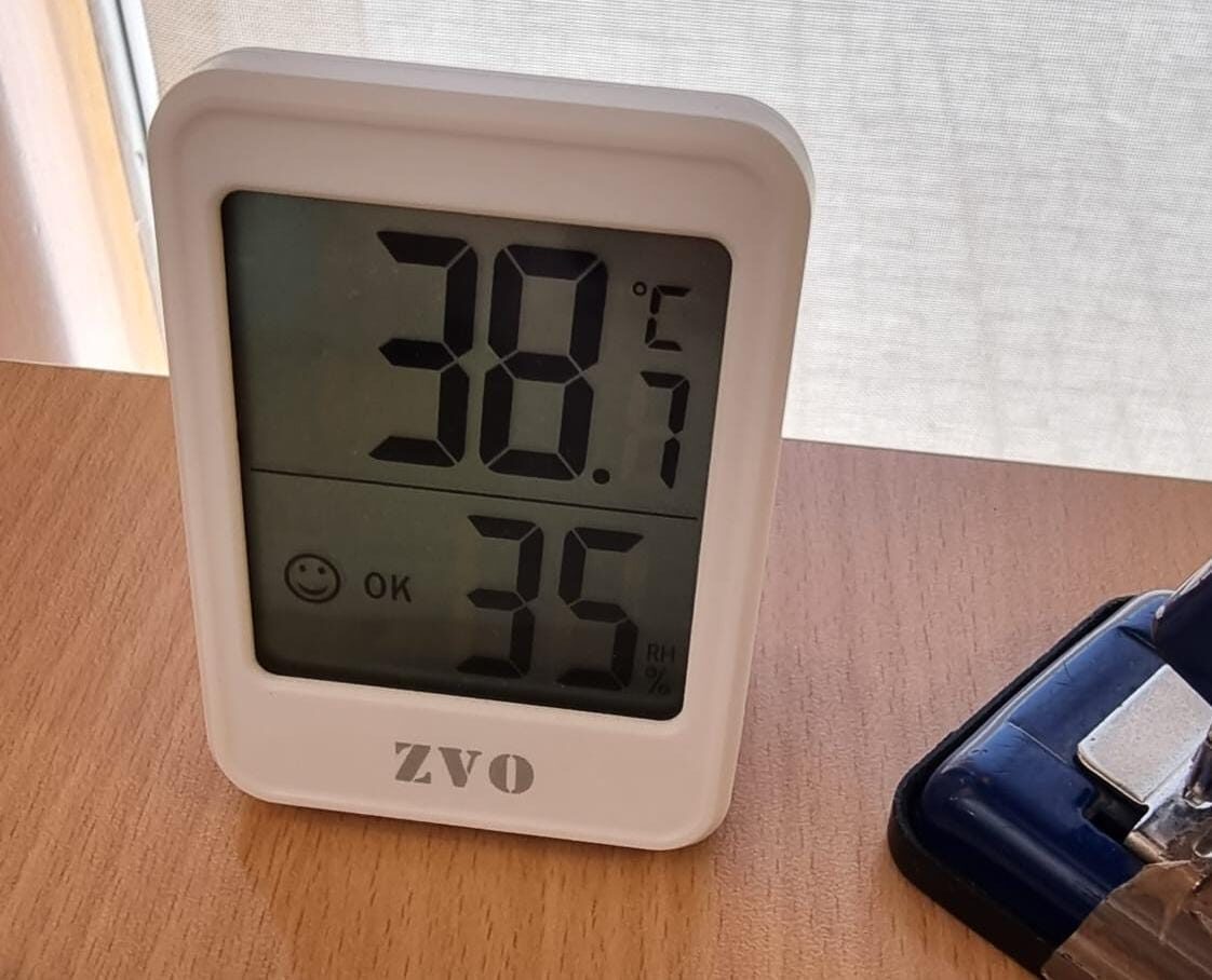 "En esta oficina, toda la fachada exterior es una cristalera y no tiene ningún tipo de ventilación, lo que hace que el calor se multiplique exponencialmente y que se den factores de riesgo para la salud del personal", advierten desde CSIF. Y como muestra, un botón: a las 13 horas de este martes, los termómetros del interior de la sede rozaban incluso los 39 grados, tal y como muestran las fotografías remitidas a Libertad Digital.