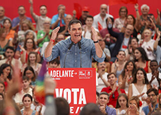 Pese a la euforia que Sánchez intentaba vender durante los últimos días de campaña, uno de los pocos que creía que era posible revalidar el Gobierno, en la sede del PSOE no las debían tener todas consigo y no empezaron a montar el escenario en la calle hasta pasadas las 23:00 de la noche.