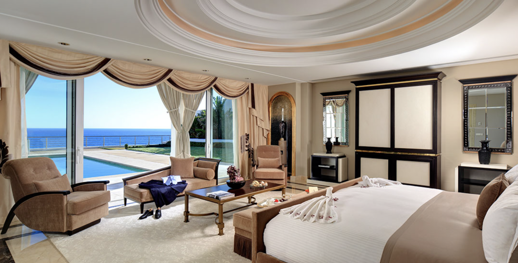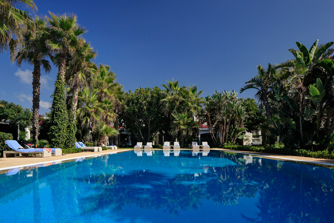 “El océano, la suave brisa que vigoriza el espíritu, el viento soplando del este, Cabo Espartel, la punta mas septentrional de África y las míticas Cuevas de Hércules”. Es uno de los llamativos que ofrece el hotel de lujo en su web.