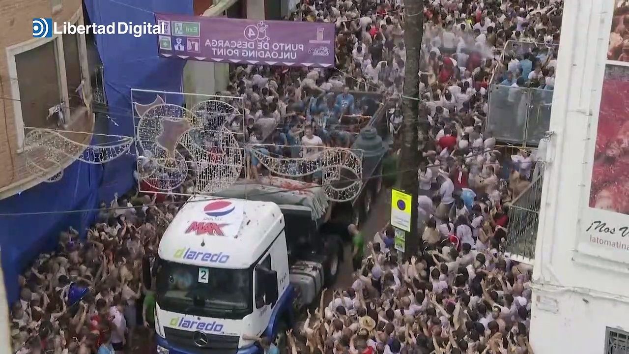 Cerca de dieciocho mil personas, 2.000 más que en la anterior edición, han tomado este miércoles las calles del municipio de Buñol (Valencia) para teñirlas de rojo en su Tomatina "más internacional" desde la pandemia. A las 12.00 en punto han comenzado a caer los primeros tomates que daban inicio a la 76 edición de la tradicional fiesta que ha convertido las calles más céntricas del municipio en una batalla campal "sin igual".
