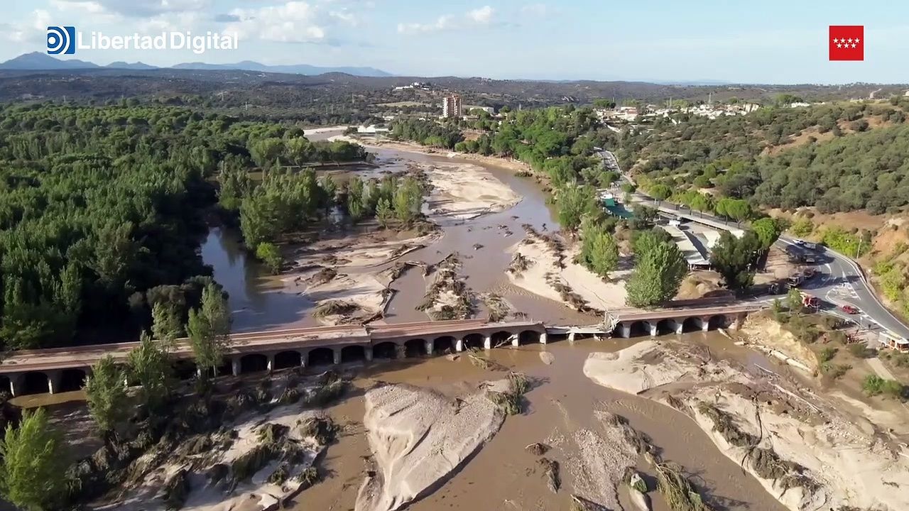 Imágenes de la Unidad de Drones de Bomberos Comunidad de Madrid por los daños provocados por la DANA en el Río Alberche.