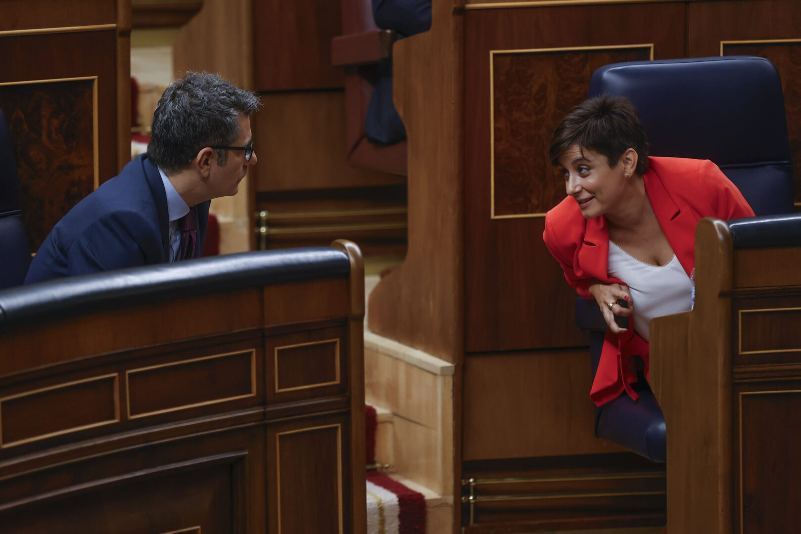 El ministro de Presidencia, Félix Bolaños, el de Interior, Fernando Grande Marlaska, y la ministra portavoz, Isabel Rodríguez, han huido de la prensa por los pasillos del Congreso cuando los periodistas le preguntaban por los dardos del expresidente del Gobierno y el que fuera su número dos.