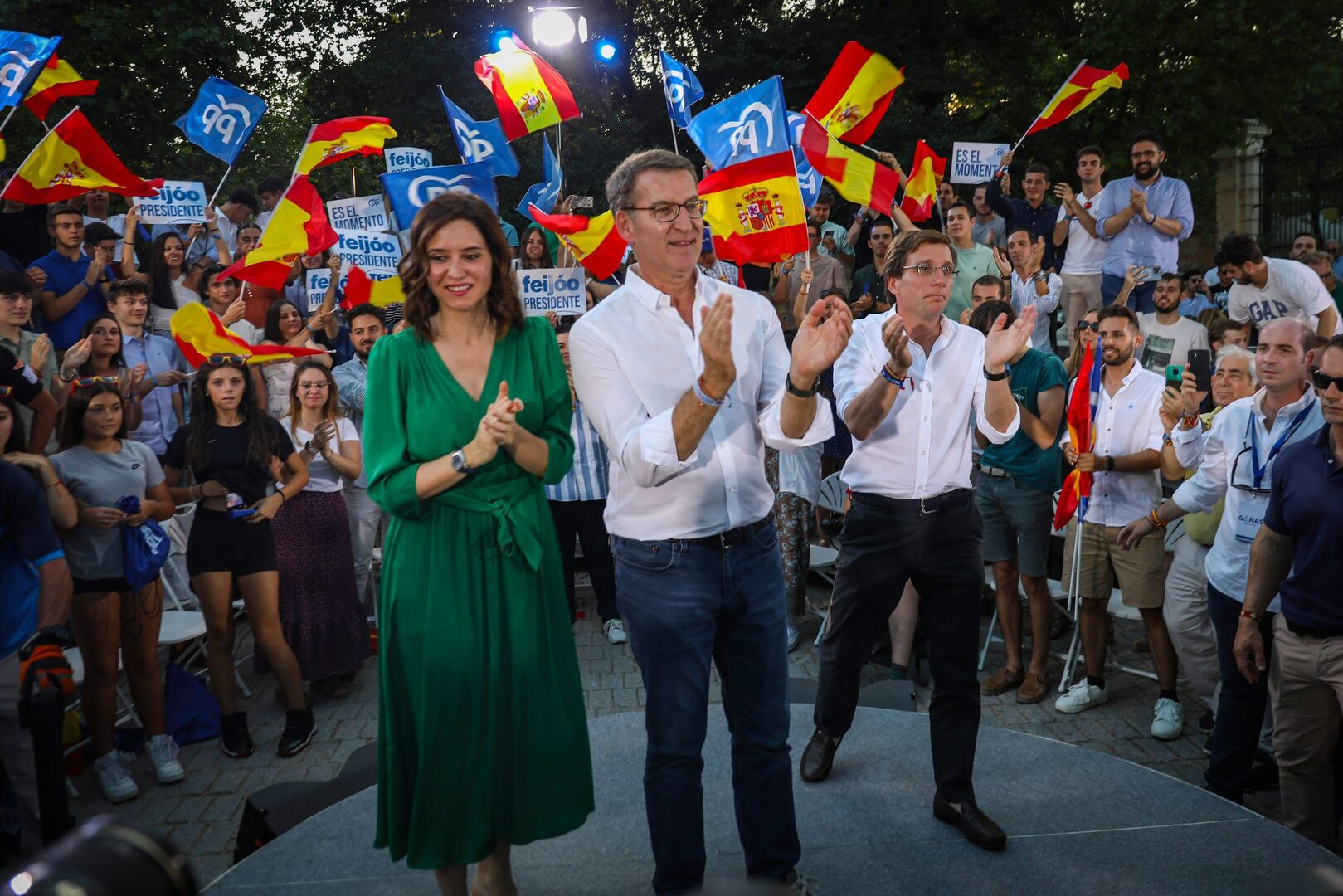 La presidenta de Madrid, Isabel Díaz Ayuso, y el alcalde de la capital, José Luis Martínez-Almeida, intervendrán en el acto protagonizado por Alberto Núñez Feijóo, que tendrá lugar el próximo domingo en Madrid, para arropar al líder del PP antes de la investidura y manifestar su rechazo a la amnistía de Pedro Sánchez.