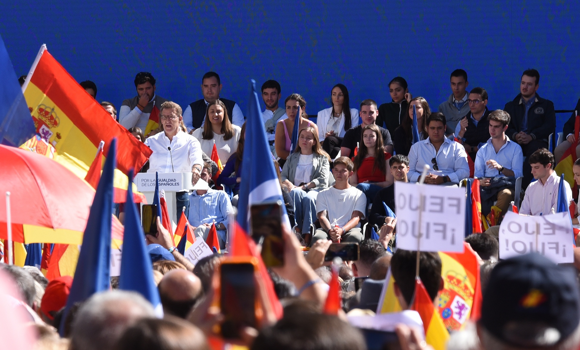 "No hay consentimiento de los españoles para dejar de ser una nación de ciudadanos libres e iguales", ha proclamado en el acto del PP contra la amnistía en la Plaza de Felipe II que ha reunido a unas 60.000 personas, según fuentes del PP. En la convocatoria han participado también los expresidentes José María Aznar y Mariano Rajoy, así como la presidenta de la Comunidad de Madrid, Isabel Díaz Ayuso, y el alcalde de la capital, José Luis Martínez Almeida.
