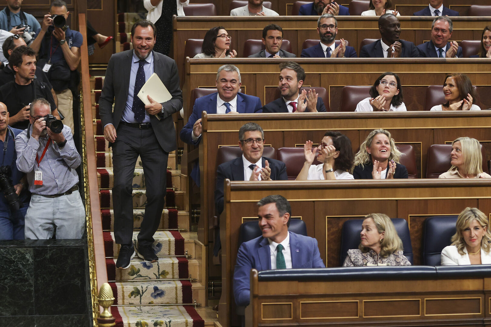 "Ustedes tienen que gobernar cuando son la lista más votada y cuando no, también", añadía Puente ante las risas y aplausos de la bancada socialista. En frente, una bancada del PP no daba crédito al desprecio del PSOE de relegar la respuesta al candidato Feijóo en un diputado raso.