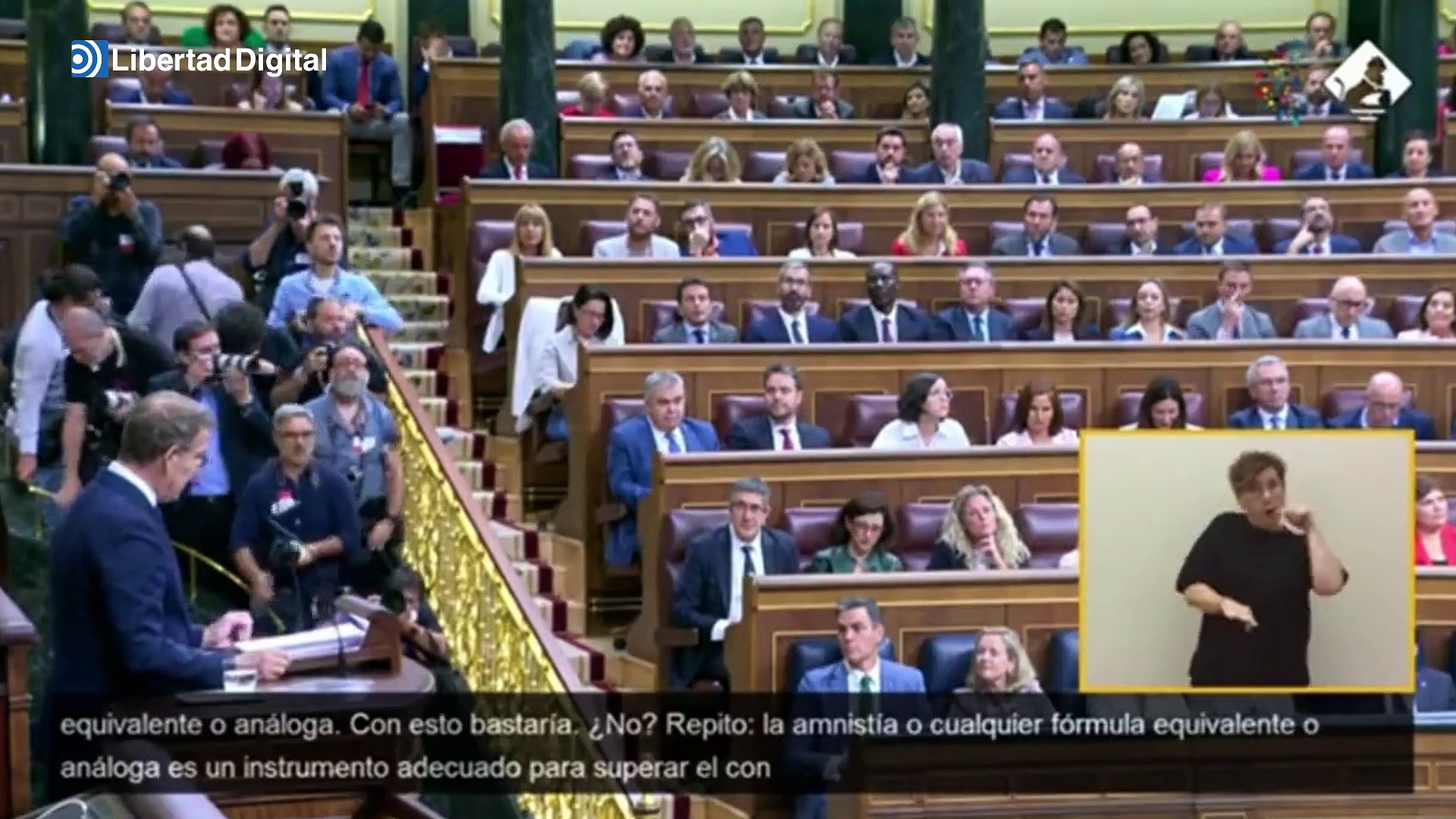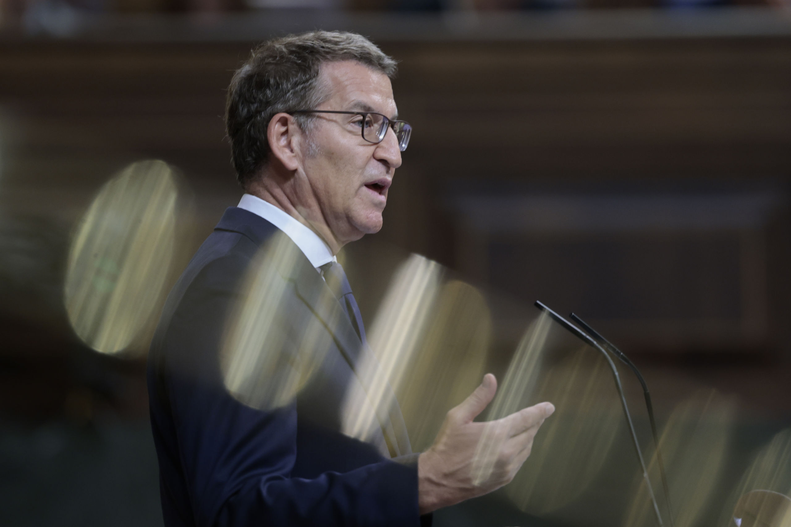 Alberto Núñez Feijóo está crecido. El candidato a la presidencia del Gobierno habla con firmeza y respaldado por una bancada popular que se está dejando las manos aplaudiendo. Dispara a la barriga –metafóricamente, se entiende– de Sánchez y de los nacionalistas: "La honestidad con uno mismo y con los demás es un valor, aunque haya muchos que lo subestimen. Agradezco a las señorías socialistas que me vean incapaz de pactar lo que ustedes van a pactar". El presidente del Gobierno atiende, eso sí, impasible.