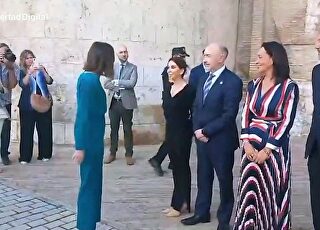 Antes de iniciar el evento, a las puertas de La Aljafería, se procedía a realizar un acto "protocolario" para los medios en el que Montero ha pasado a saludar a las autoridades locales. En primer lugar estaba situada la presidenta del Parlamento, Marta Fernández. Montero acerbaba a ella y le ha saludado con estas palabras: "Me alegro de que nos encontremos en un evento para defender el derecho al aborto".