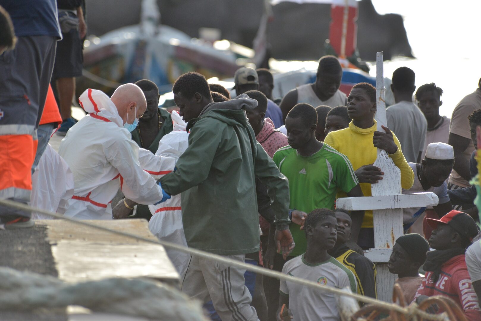 "El miércoles no había ni autobuses, porque los que hacen las rutas habituales tuvieron que desviarse para venir aquí para poder trasladar a los más de 600 inmigrantes que llegaron ese día. Y ya no hablemos del problema de salud que puede llegar a producirse -explica el secretario de la Cofradía de Pescadores-. En nuestra comarca hay un pequeño centro médico, y el médico y el enfermero de guardia tienen que ir a tratar el problema inmediato, que es la llegada de los inmigrantes. Entonces, si a una persona en nuestro municipio le da un infarto, esa persona se muere, porque no hay quien lo atienda".