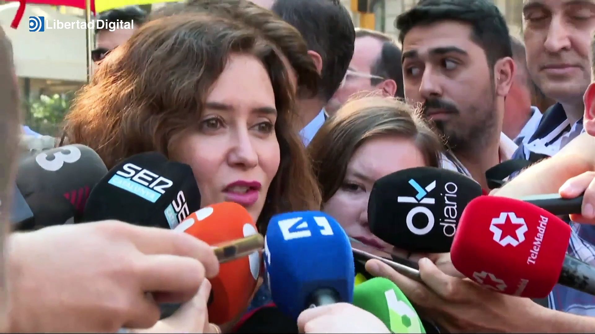 La presidenta de la Comunidad de Madrid, Isabel Díaz Ayuso, quien ha afirmado que "los catalanes no están solos" en la manifestación convocada por la Societat Civil Catalana en contra de la amnistía.