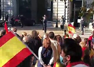En 2020, Pedro Sánchez vio en la pandemia del coronavirus el mejor escudo contra la más que previsible pitada. El tradicional desfile del 12 de octubre se sustituyó por un acto de reducidas dimensiones en el patio de la Armería del Palacio Real, pero ni el poco público que podía acceder a la zona ni la distancia salvaron al líder del PSOE de las críticas: los gritos de "¡fuera!" y "¡dimisión" volvieron a repetirse un año más.