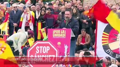 La Fundación para la Defensa de la Nación Española DENAES, ha convocado este domingo una manifestación en Madrid bajo el lema '¡Contra la amnistía y el golpe de Sánchez!', que ha sido secundada por la cúpula de Vox con Abascal a la cabeza.
