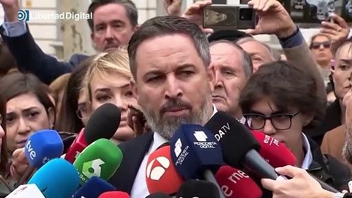 Declaraciones del líder de VOX, Santiago Abascal, quien ha hecho hincapié en que su formación "confía" en el Alto Tribunal y el Poder Judicial y en que "utilicen todas las herramientas legales" a su disposición para "detener este golpe" que quiere llevar a cabo, a su juicio, el presidente del Gobierno en funciones, Pedro Sánchez.