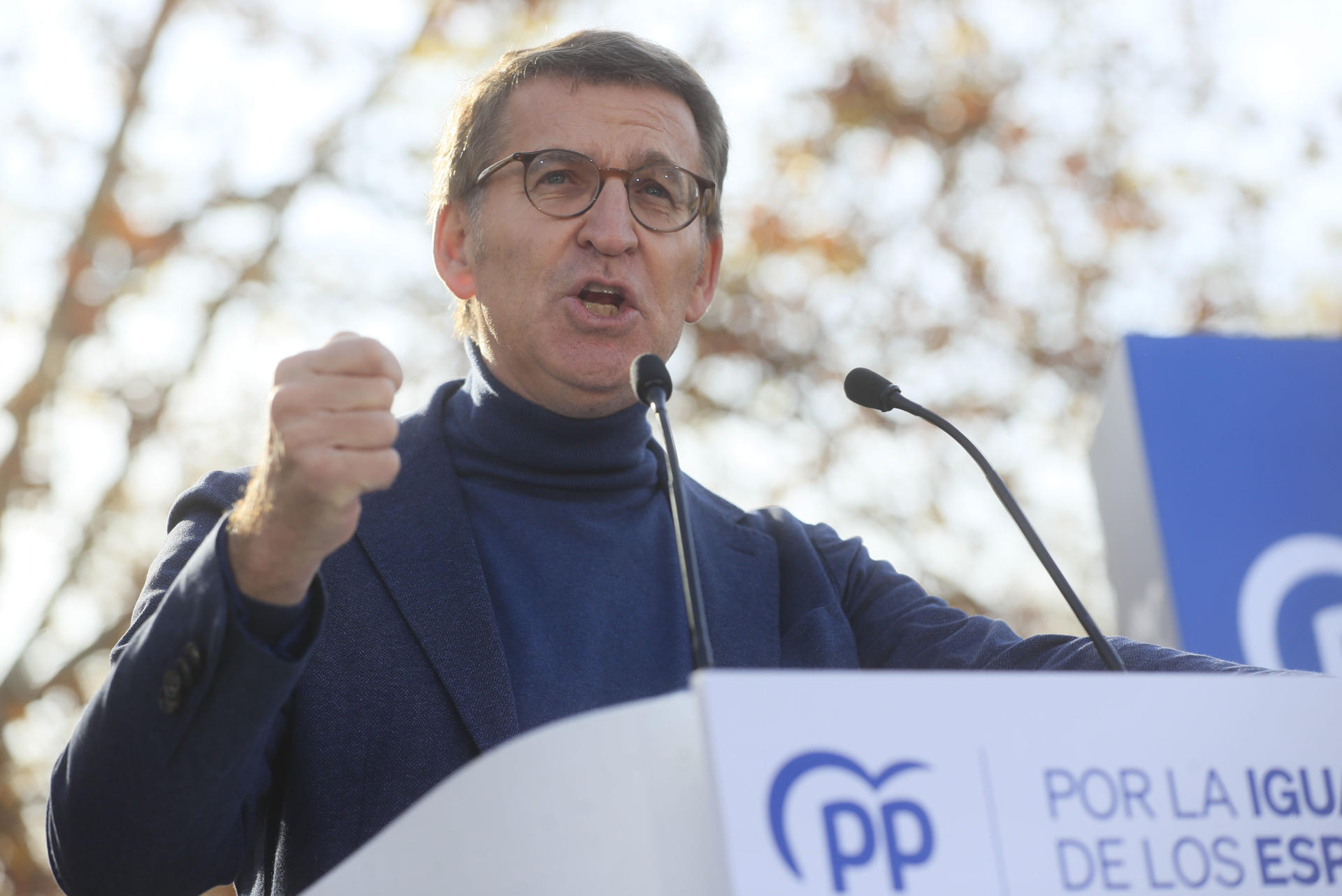 El líder de los populares ha cargado, además, contra el secretismo con el Gobierno está llevando a cabo estas negociaciones y ha advertido de que no lo van a consentir. "No vamos a aceptar la opacidad con la que Sánchez se reúne y negocia en la clandestinidad. En nombre de los españoles, no; en nuestro nombre, no; en el de la mayoría de los españoles, no. No se negocia la estabilidad, la dignidad y la democracia de España", ha reiterado Feijóo, al que la multitud ha respondido con gritos de "¡No en mi nombre!".