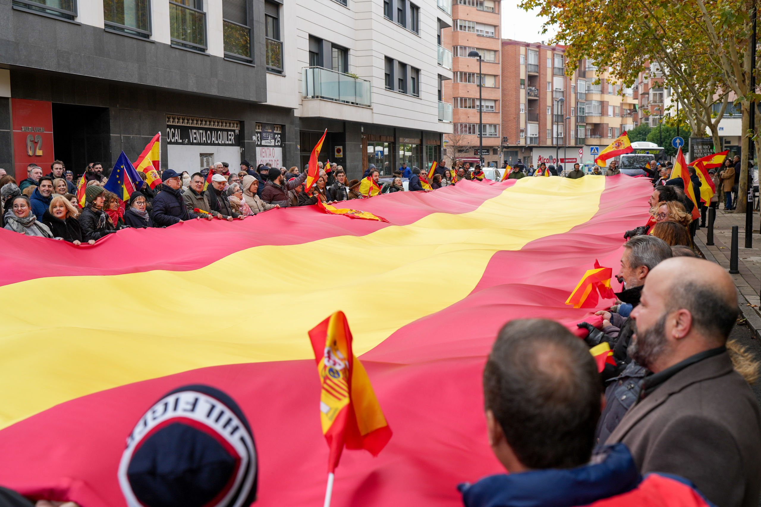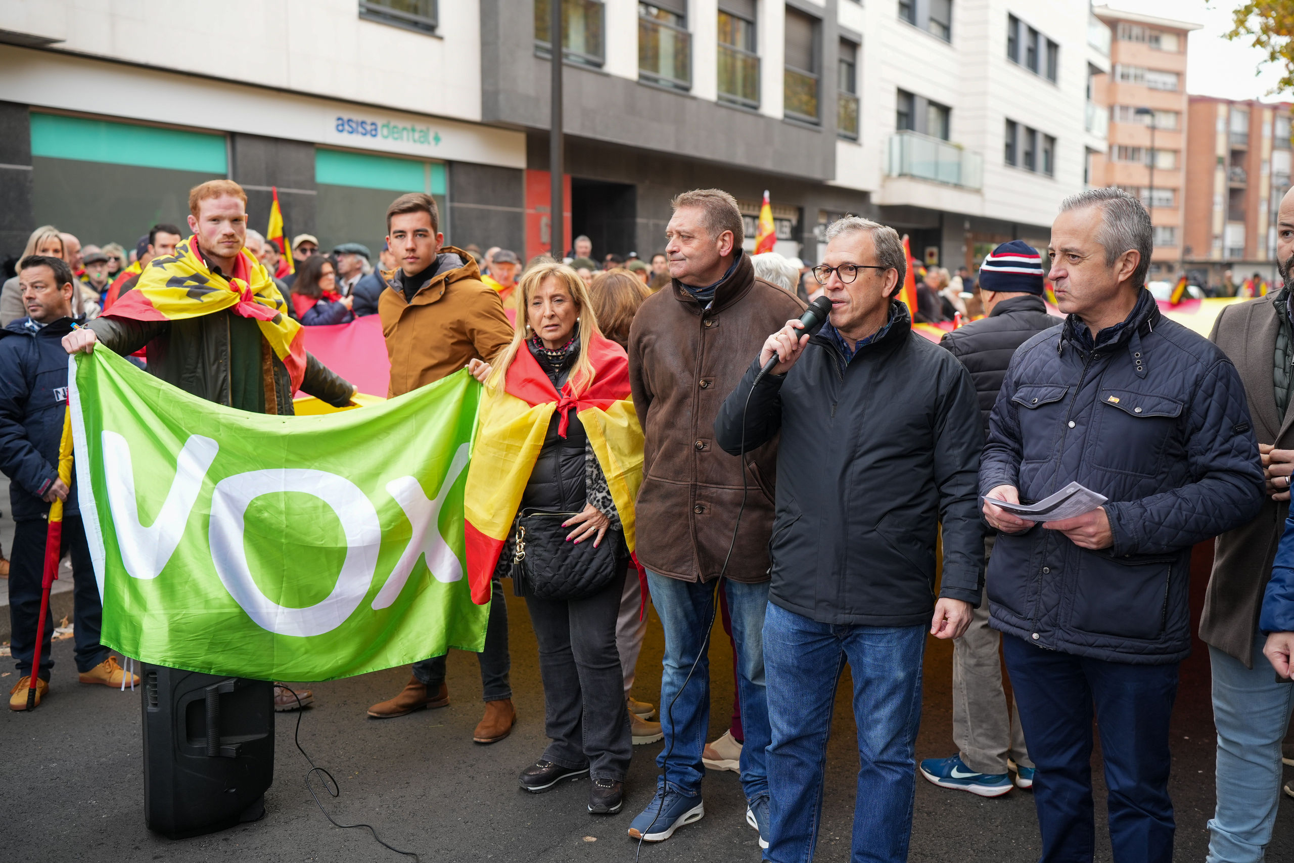 Simpatizantes de Vox se concentran frente a la sede del PSOE en Valladolid para leer el manifiesto de Denaes este miércoles con motivo del Día de la Constitución.