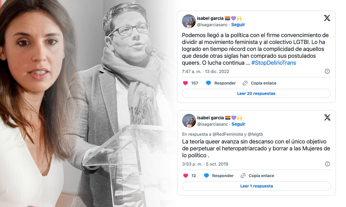 Es más, en su perfil de X (antes Twitter) es fácil encontrar innumerables mensajes en los que denuncia abiertamente el "delirio trans" e insiste en que "las mujeres trans no existen", lo que ha desatado la ira de la exministra, que este jueves recordaba al Gobierno de PSOE y Sumar que "defender los derechos trans y LGTBI es una obligación democrática".