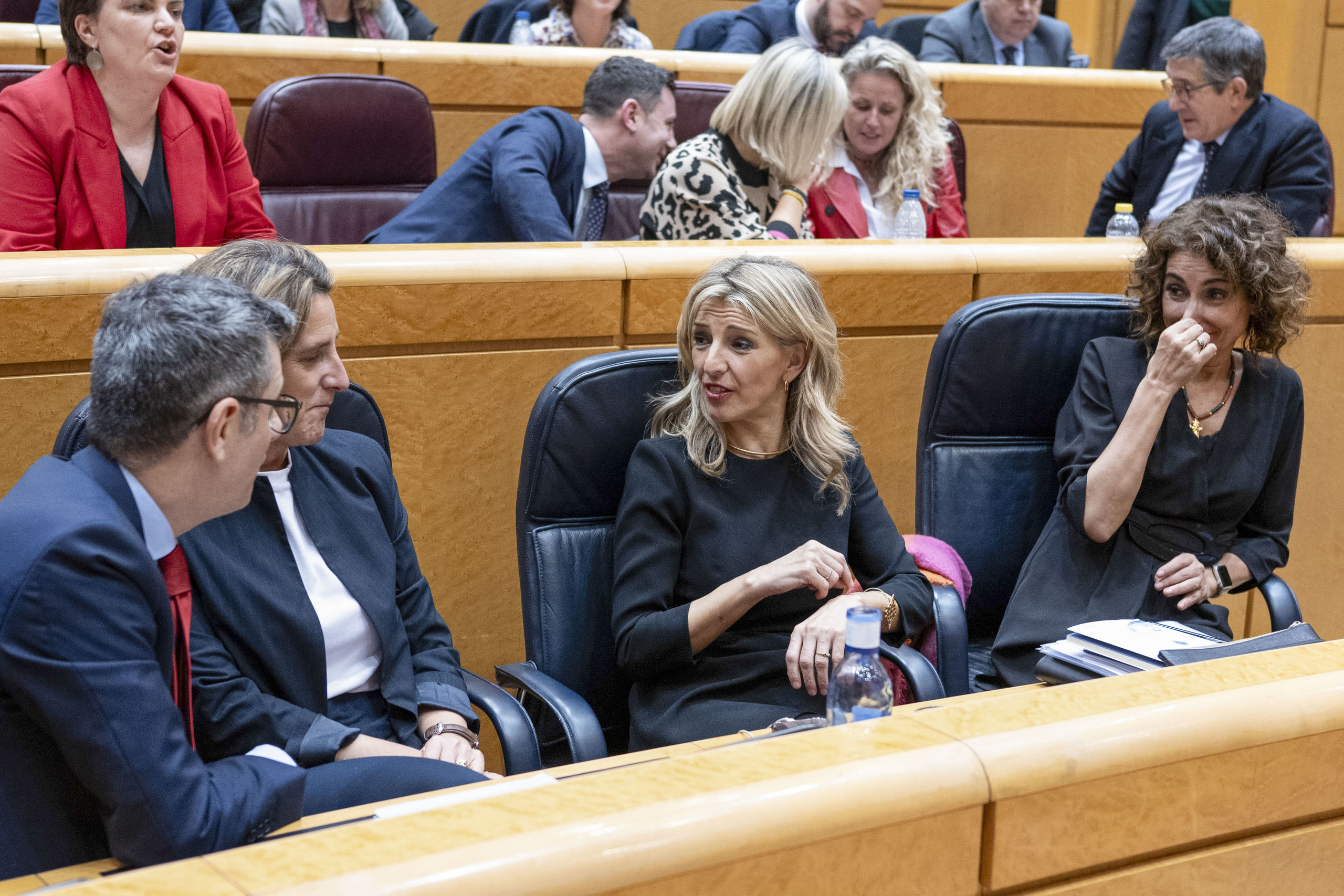La noticia no tardaba en llegar dentro del hemiciclo. Bolaños y María Jesús Montero abandonaban azorados el pleno y ,con cara de evidente malestar, se dirigieron hacia un despacho de las plantas superiores del Senado. Hasta las seis de la tarde no se aclaró el sentido del voto separatista: una ausencia que equivaldría, a efectos prácticos, a una abstención. Ministros y altos cargos confirman que conocieron la decisión de Junts cuando la presidenta del Congreso, Francina Armengol, anunció el resultado.
