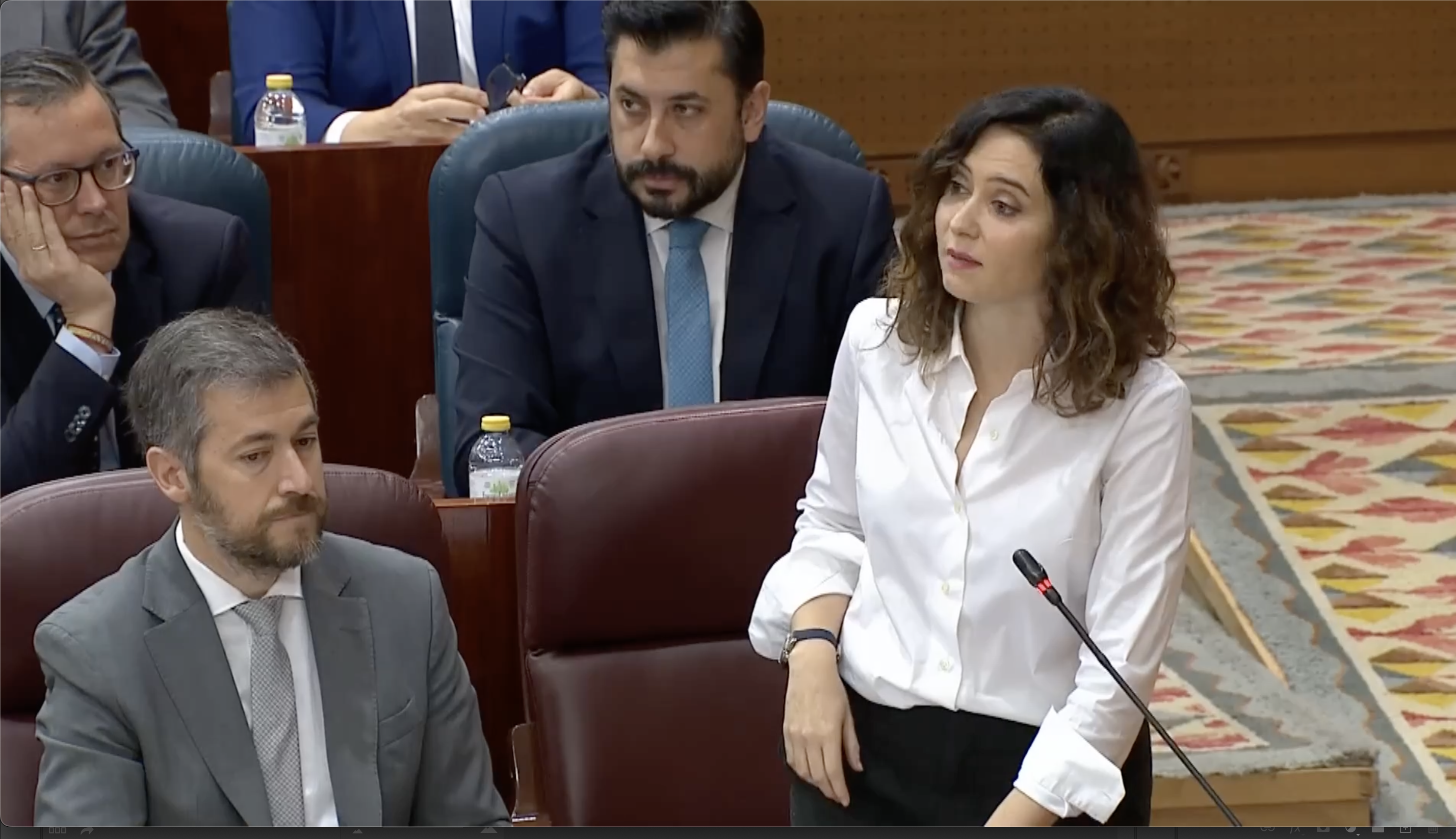 "Están desesperados en la eterna oposición", afirmó Díaz Ayuso en la sesión de control del pleno de la Asamblea de Madrid, en respuesta a las críticas de Lobato al PP y a su Gobierno por falta de transparencia por no facilitar las actas de visitas de la Policía Municipal a las residencias de mayores durante la pandemia.