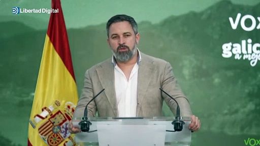 El líder de Vox, Santiago Abascal, quien ha ha culpado a los 'populares' de la mejora de los resultados del BNG. "Su avance para inexorable y las causas son muy claras".