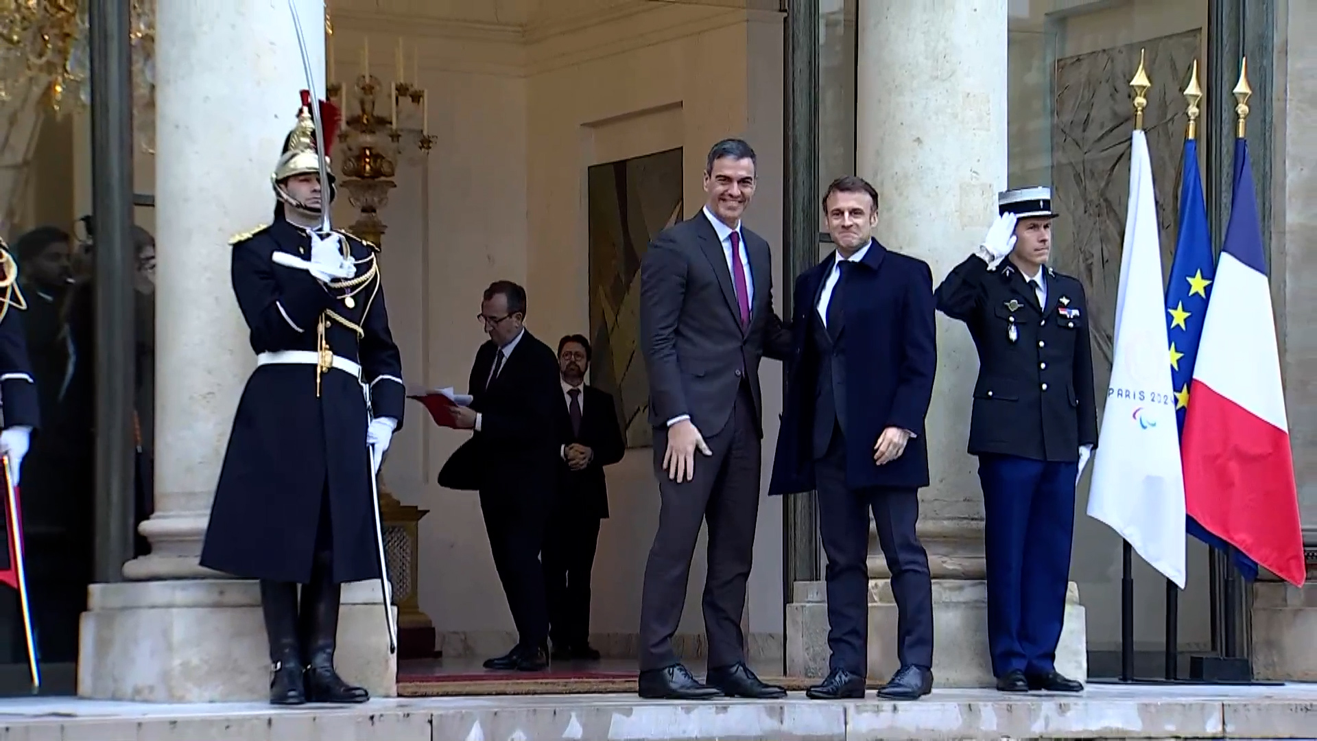 El presidente del Gobierno, Pedro Sánchez, ha sido recibido por el presidente de la República de Francia, a su llegada a París donde va a asistir a la Conferencia de ayuda a Ucrania.