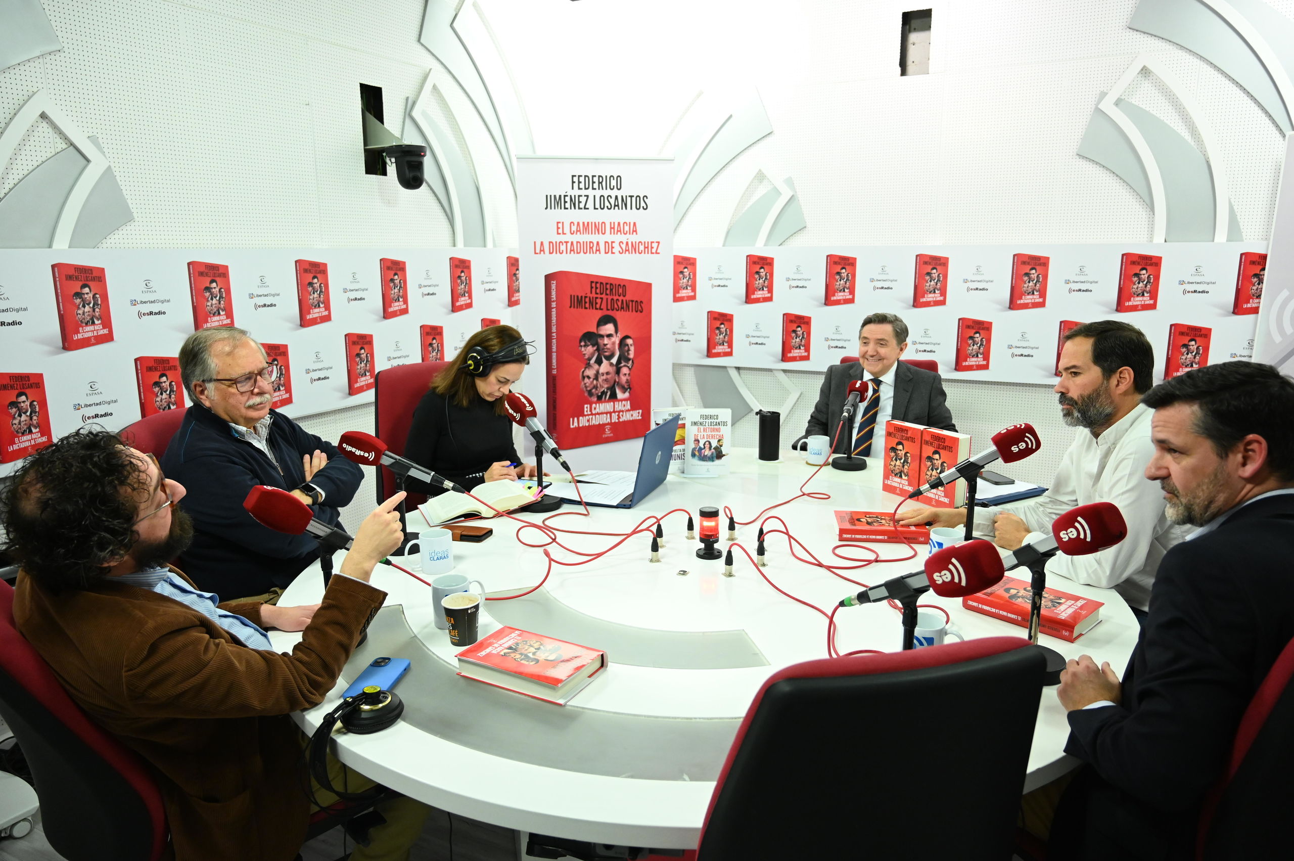 Este miércoles 28 de febrero sale a la venta el nuevo libro de Federico Jiménez Losantos, El camino hacia la dictadura de Sánchez, y el autor lo ha presentado en su programa acompañado de los periodistas Luis Herrero y Dieter Brandau, del director del grupo Libertad Digital, Javier Somalo y del director de El Mundo Joaquín Manso.