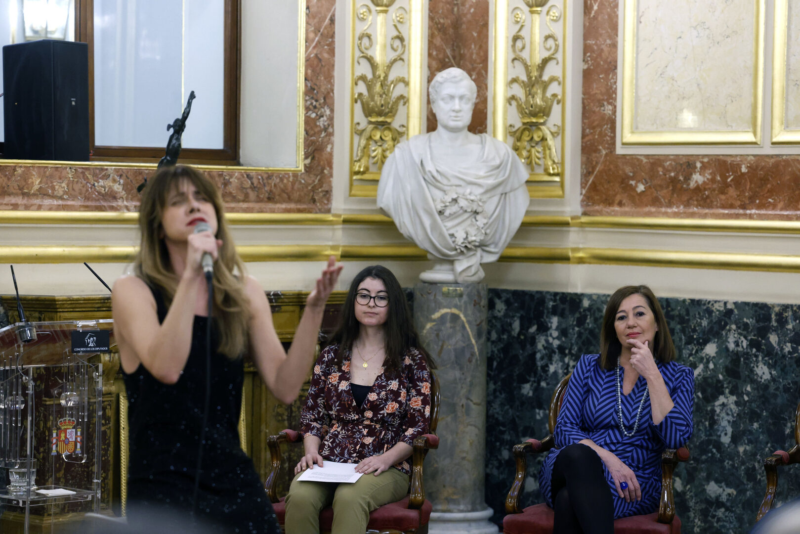 Durante su discurso ante las autoridades que asistían a la cita, con la única ausencia de Vox, Armengol ha comenzado haciendo suyas las palabras de la poeta argentina Alejandra Pizarnik: "Soy mujer. Y un entrañable calor me abriga cuando el mundo me golpea. Es el calor de las otras mujeres, de aquellas que hicieron de la vida este rincón sensible, luchador, de piel suave y corazón guerrero". Poema que, según ha dicho, "le vino muchas veces a la cabeza durante la preparación del acto".