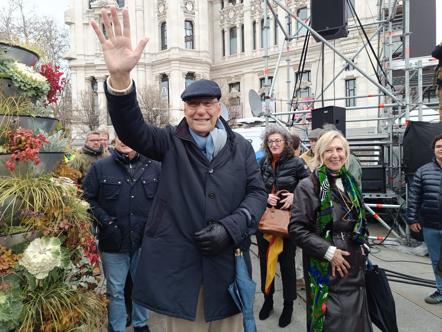 Aplausos a la llegada de Alejo Vidal Quadras, presidente de Foro Libertad y Alternativa, a la concentración para pedir la dimisión de Sánchez. Ha asegurado que se encuentra "bastante bien" tras el atentado en el que sufrió un disparo. También ha señalado que la recuperación ha sido "larga" y que ha habido momentos "muy duros". Con respecto a la concentración, ha señalado que "es importante estar aquí porque lo que está en juego es la existencia misma de España como nación".