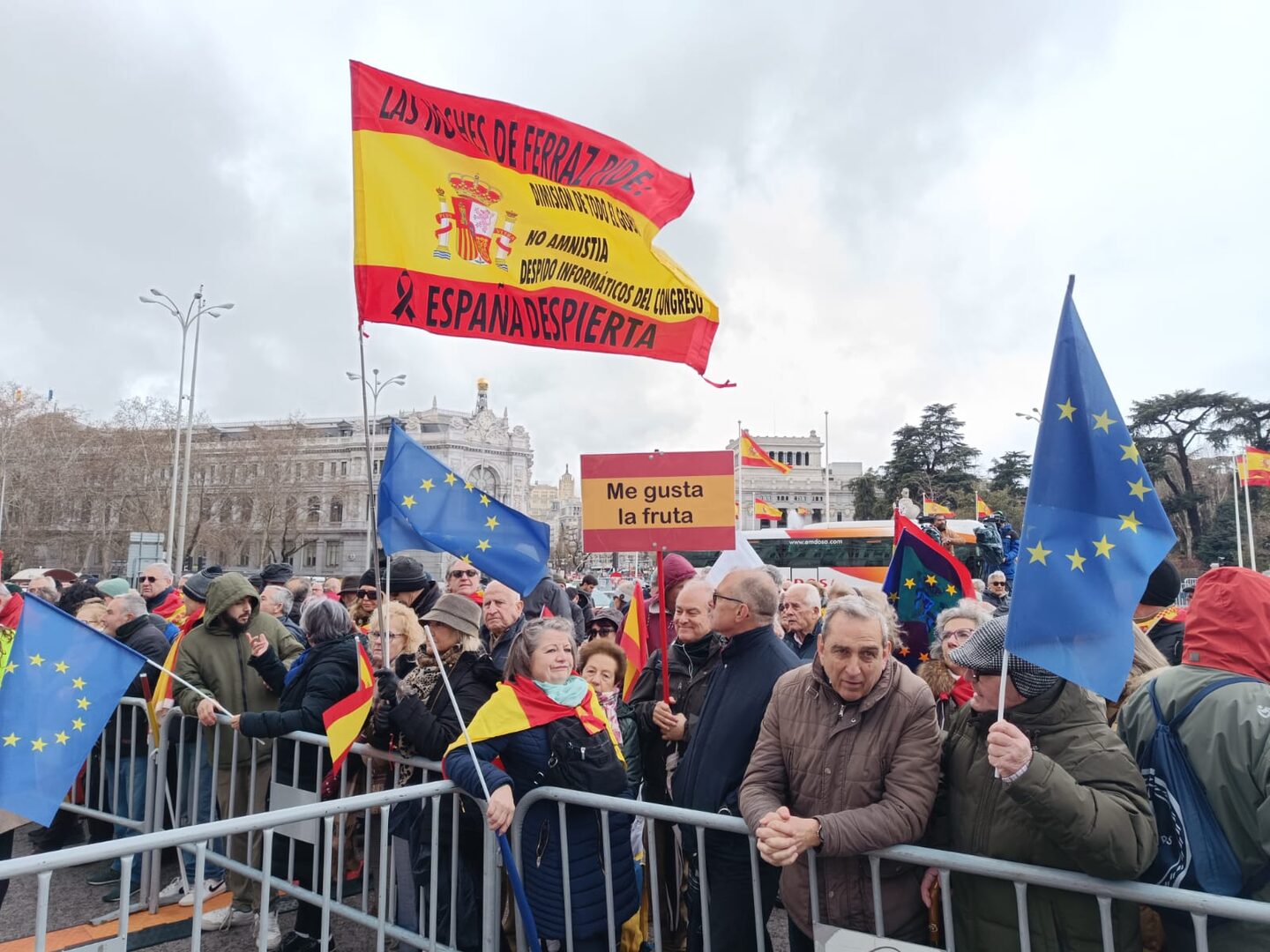 El líder de Vox, Santiago Abascal, acaba de llegar a la concentración y ha sido recibido por los asistentes al grito de "a por ellos". En declaraciones a los medios asegura que "no habrá paz ni tregua" para este "gobierno de maldades". También ha asegurado que no hay "fechoría" que no haya cometido "este gobierno mafioso", en referencia al caso Koldo. Abascal también ha arremetido contra el PP y ha asegurado que "no se puede por un lado rechazar la ley de Amnistía y, por el otro, volverse a reunir con Bolaños" para negociar la renovación del Consejo General del Poder Judicial. Además, ha señalado que el PP tiene la posibilidad tiene de frenar todo esto negándose a tramitar la ley de Amnistía en el Senado.