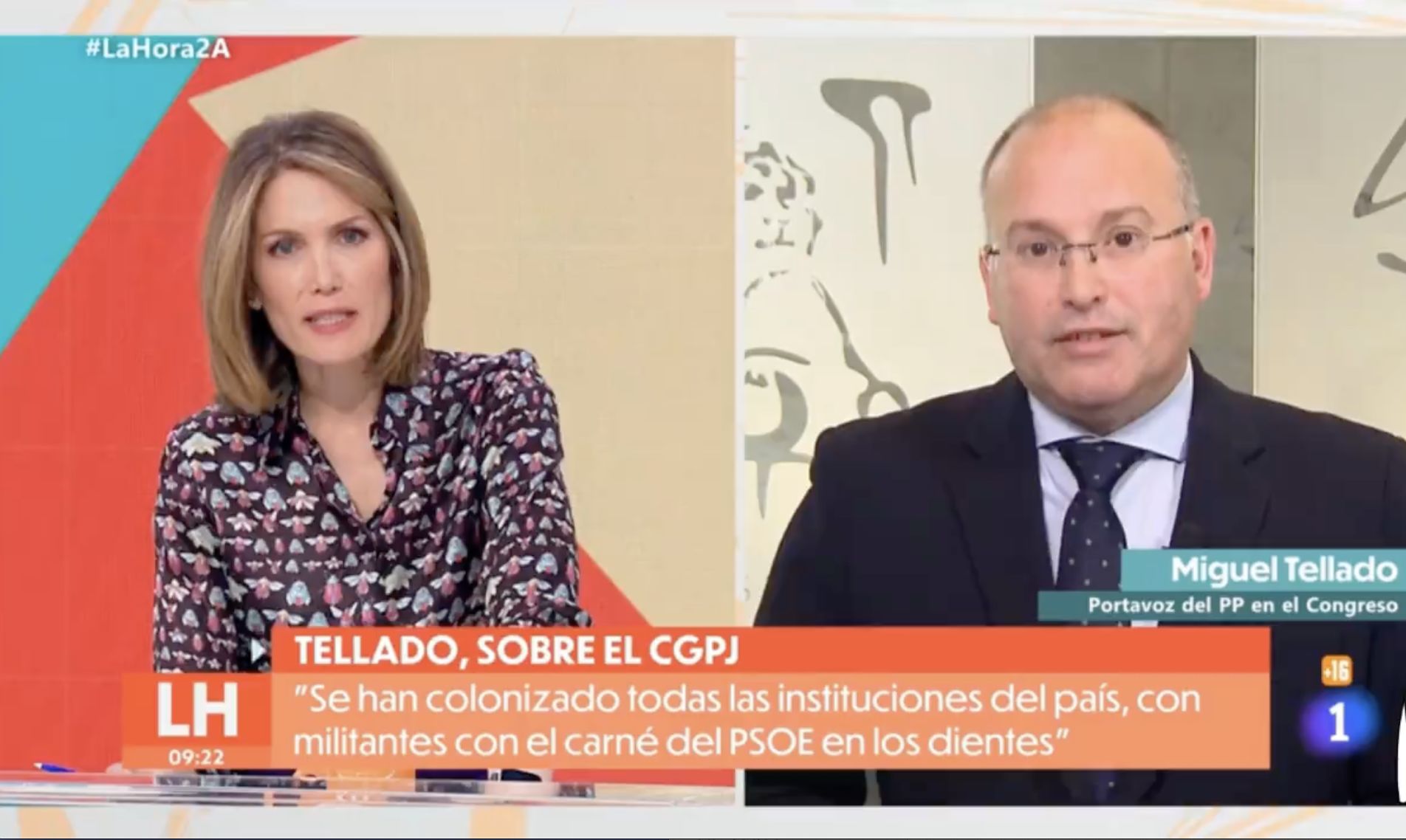 Miguel Tellado ha lamentado que "Pedro Sánchez haya puesto a una militante socialista con el carnet entre los dientes", calificando el hecho como "una mala noticia, especialmente para los profesionales que hacen bien su trabajo en los medios públicos de este país", ha dicho, incluso yendo un poco más allá: "Es un insulto no sólo a la audiencia sino especialmente a los profesionales honestos".
