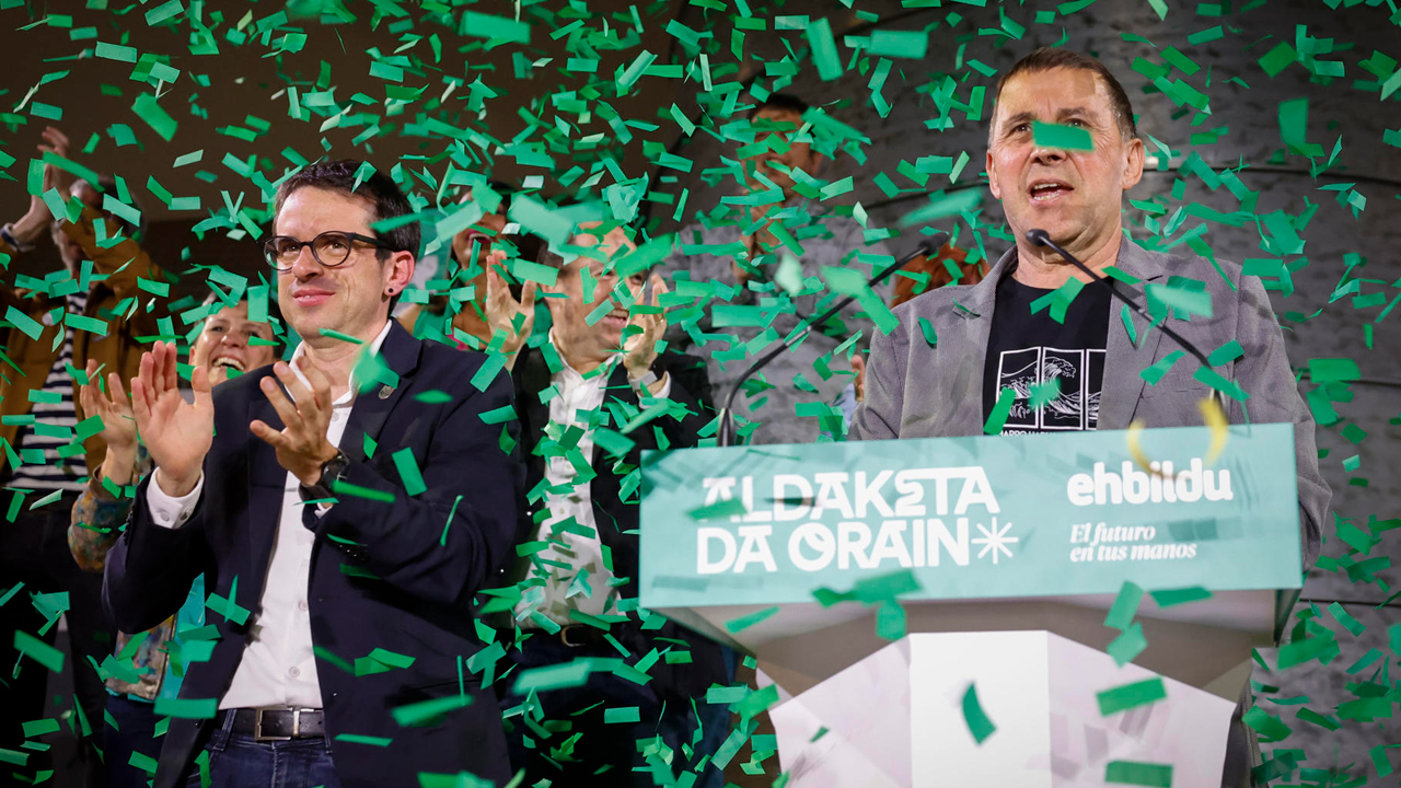 Pasadas las diez y media de la noche, entre gritos de "¡independencia! ¡independencia! y 'jo ta ke irabazi arte' (dale que te pego, hasta la victoria) y lanzamiento de confetis, Otegi ha tomado la palabra para celebrar el resultado "histórico" de la izquierda abertzale, y ha reconocido que el PNV ha ganado las elecciones, al que ha felicitado, pero ha hecho una lectura en el ámbito de "toda Euskal Herria", atribuyéndose la mayoría en los siete territorios.
