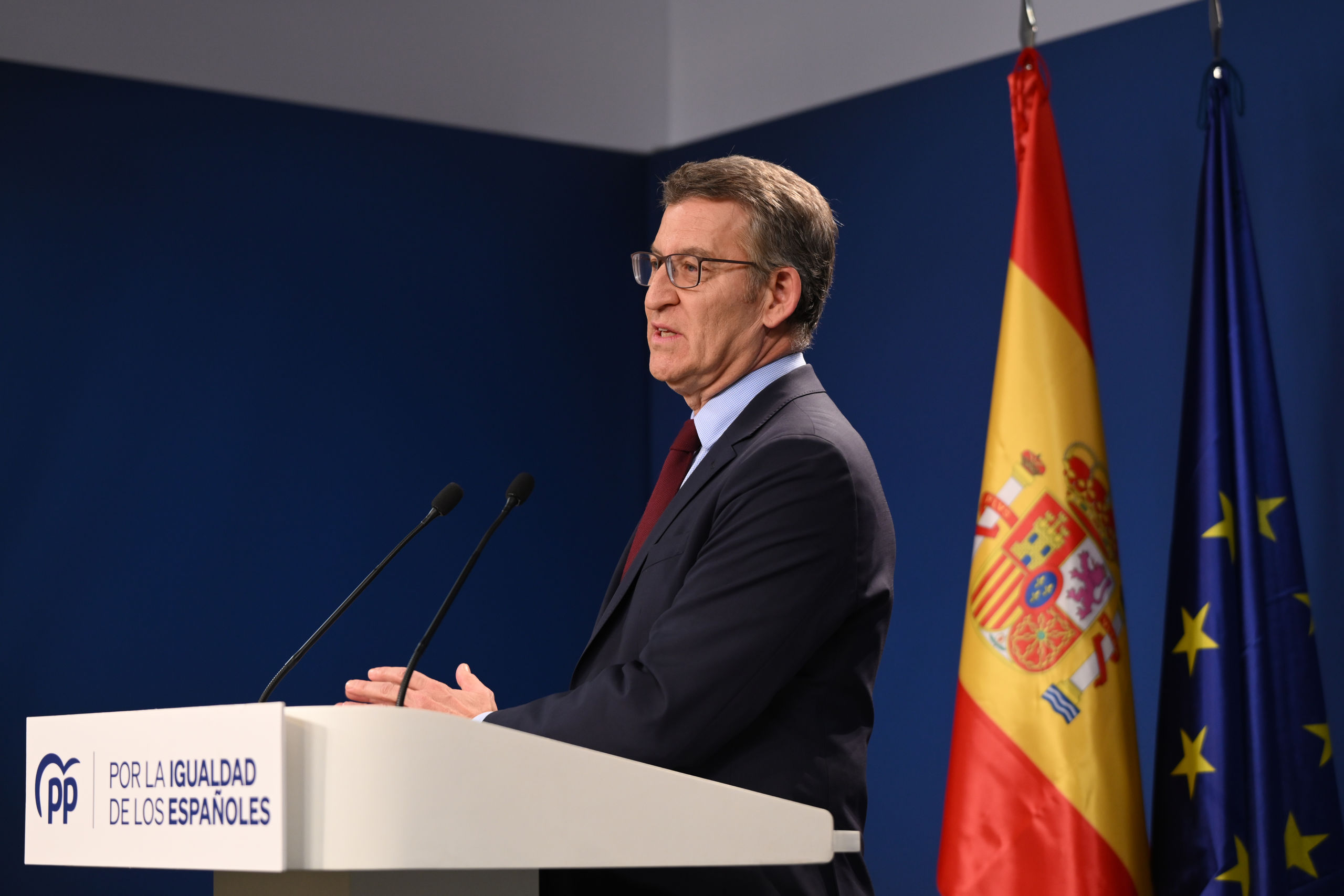 El líder del PP, Alberto Núñez Feijóo, ha comparecido este jueves ante los medios de comunicación en la sede de su partido para comentar la carta del presidente del Gobierno, Pedro Sánchez y su amenaza de dimitir tras la apertura de una investigación judicial contra su mujer, Begoña Gómez, por tráfico de influencias. Este ha sido el discurso completo del líder del Partido Popular: